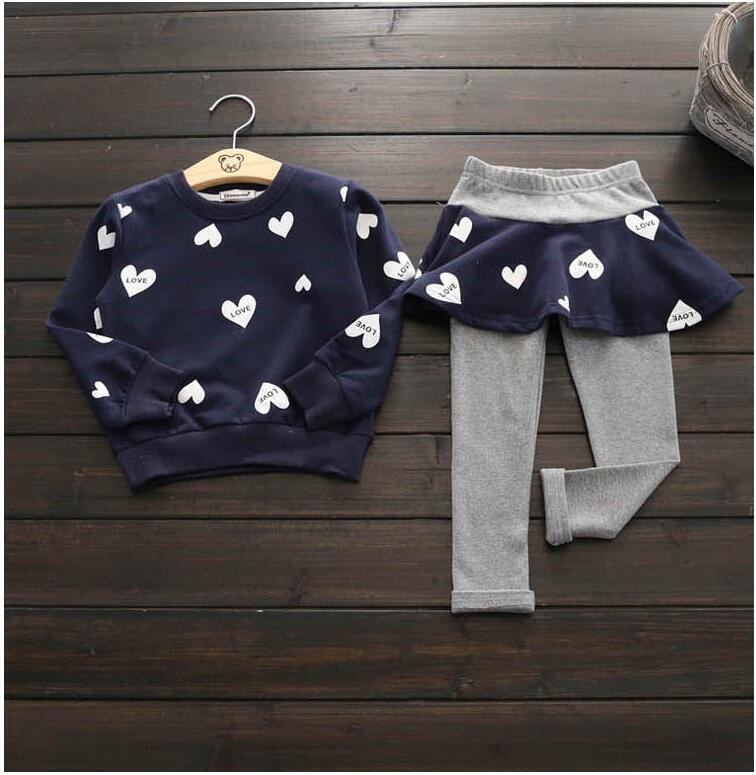 新作 2017秋冬ガールズ服スーツフード付きコート+スカートパンツ3-8Yガールズキッズラブセットレギンス2パンツパンツ オータム 秋物 ウィンター 冬物