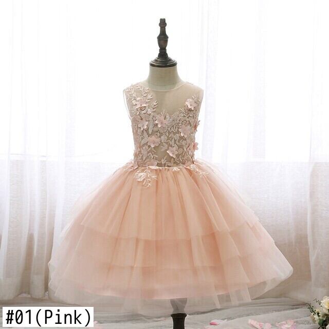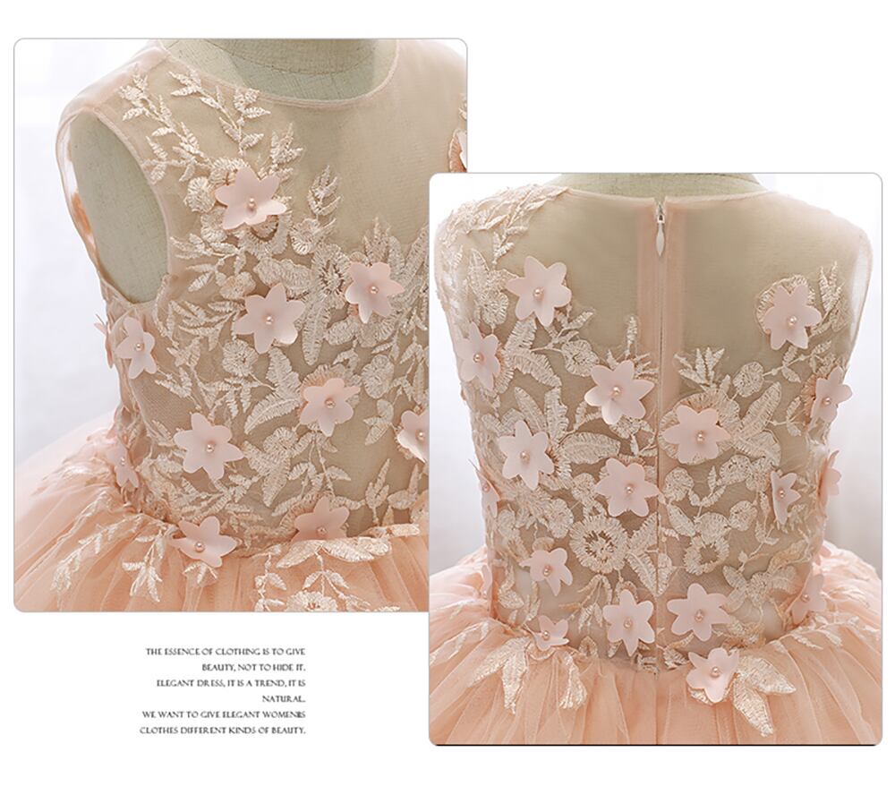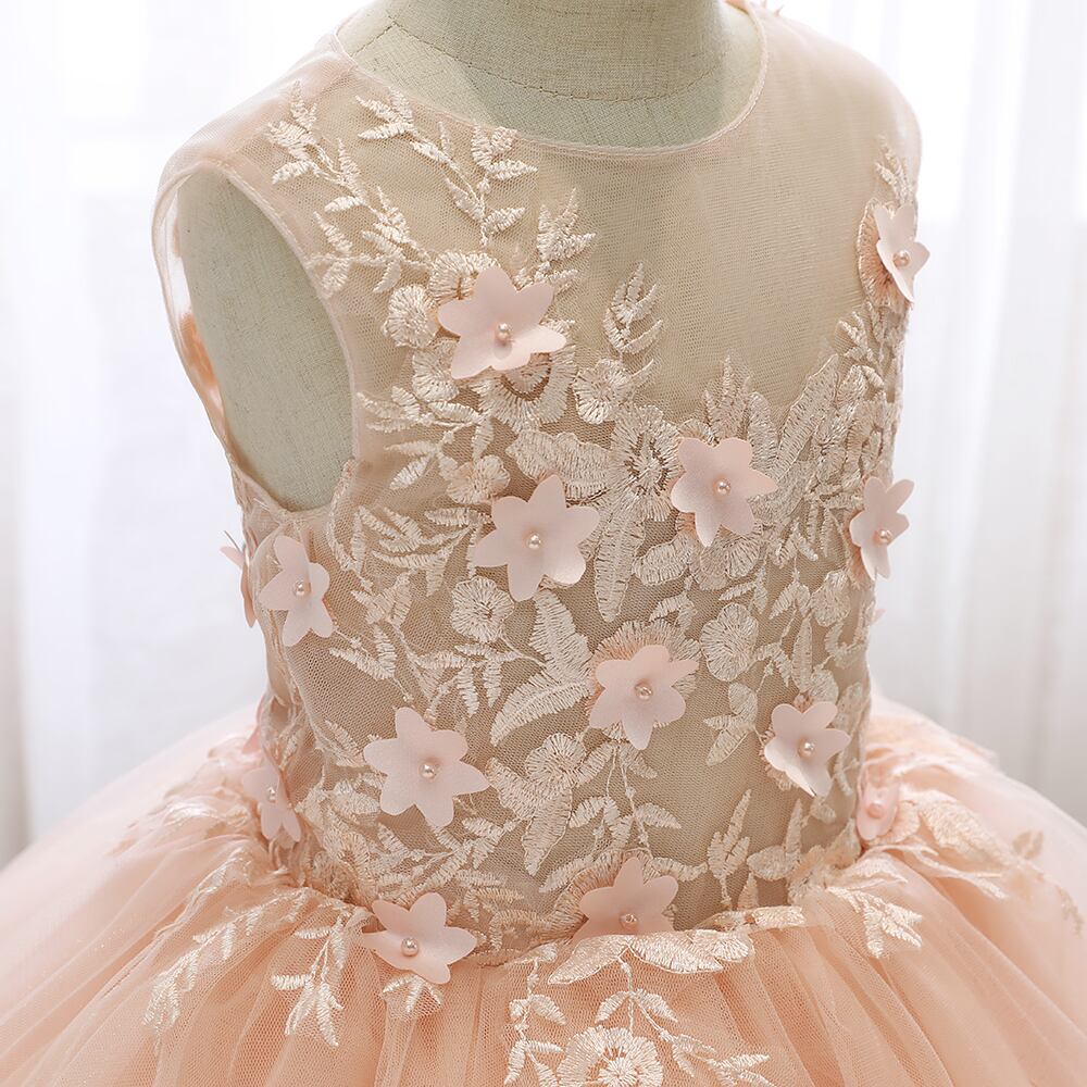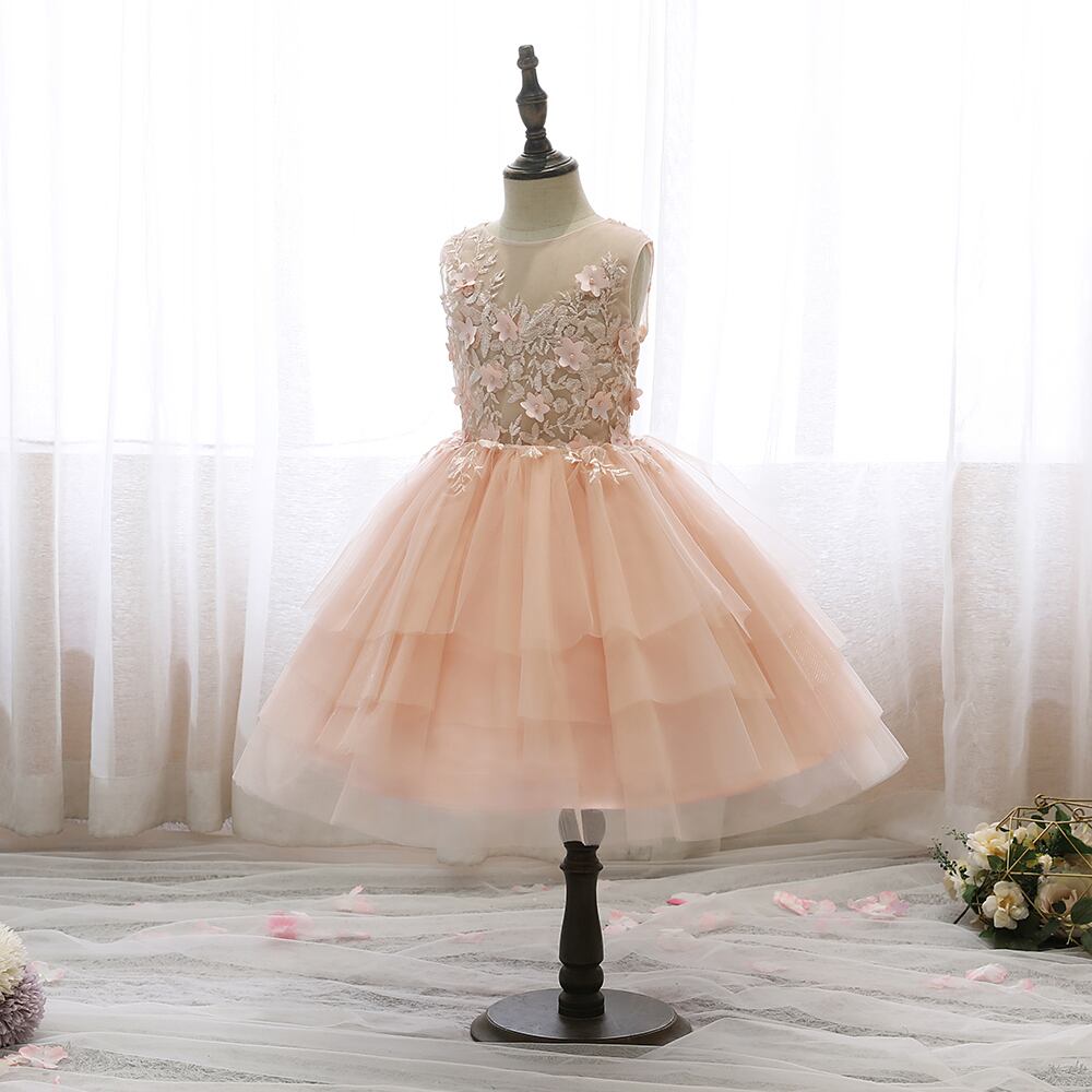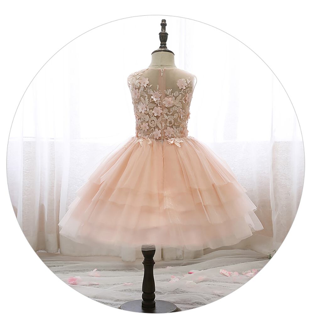 新作 子供刺繍ドレスペティスカートフラワーガールドレスチュールレースノースリーブリトルブライドメイドウェディングパーティードレス