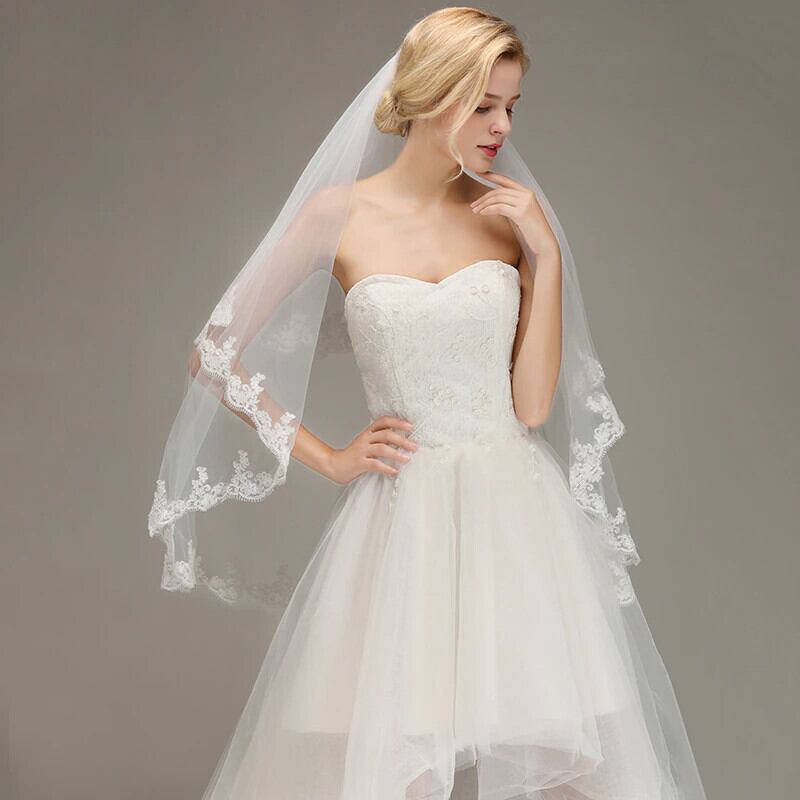 FATAPAESEウェディングベール1.5Mレースロングソフトチュールフェイスベールコームアイボリーホワイトブライドアップリケベールウェディングアクセサリーボイル