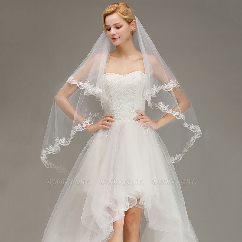FATAPAESEレースエッジアップリケ2層1.5x1Mウェディングベール、コームソフトチュールウェディングアクセサリーホワイトアイボリーブライダルベール