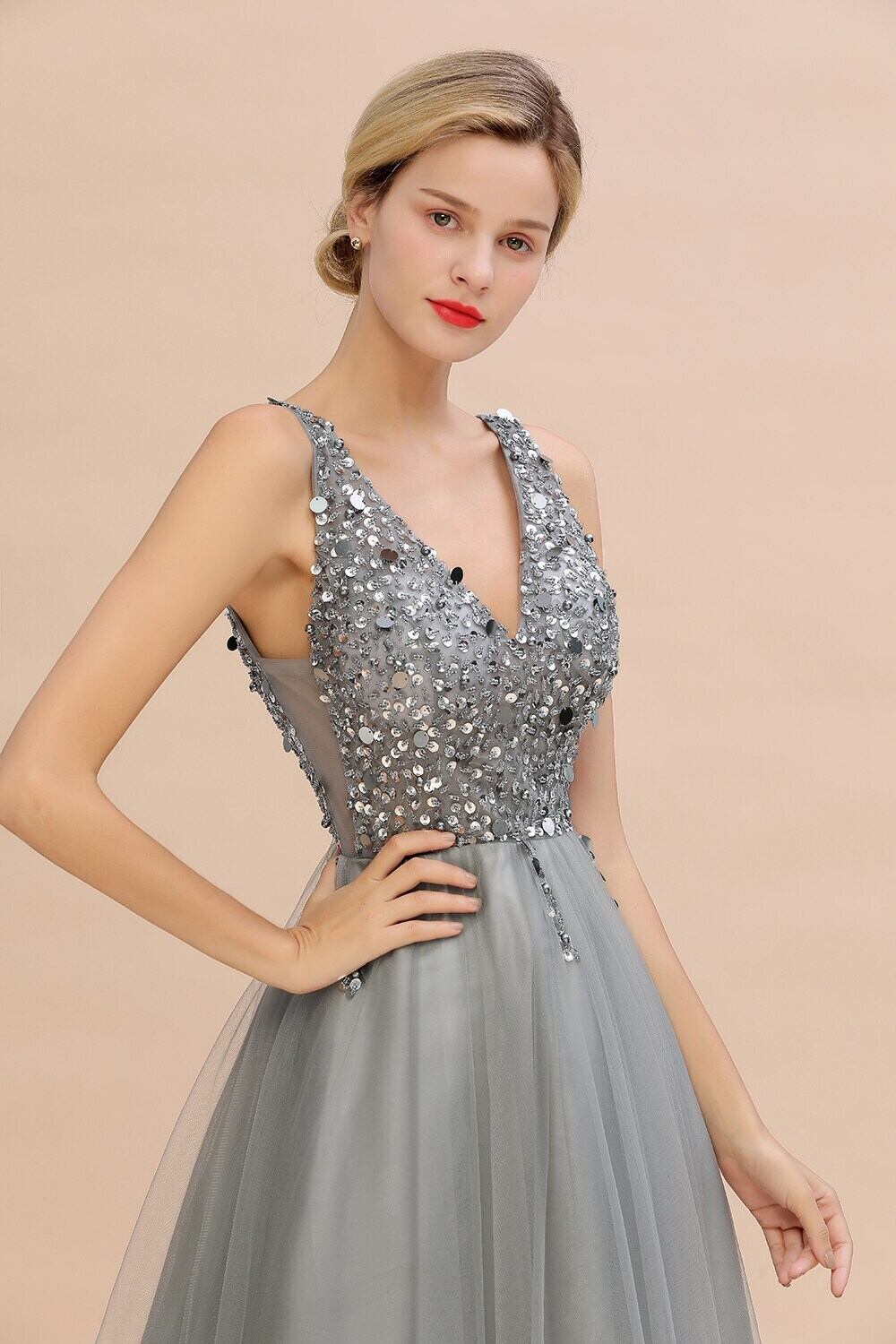 FATAPAESEソフトガールブライドメイドドレスマルウェディングパーティークロスディープVネックバックレススパンコールビーズVestidodeFesta Femle