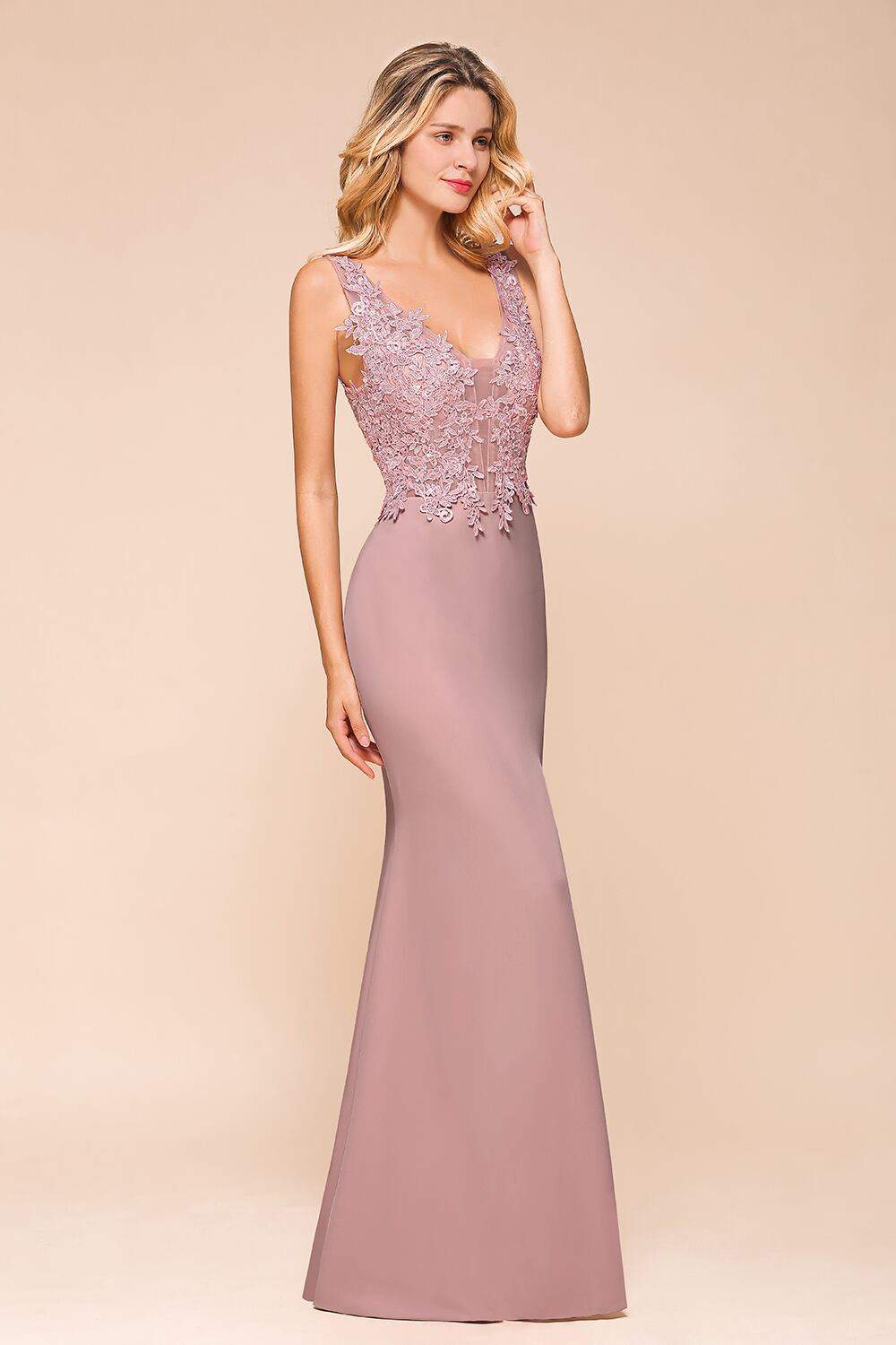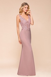 FATAPAESEダスティピンクマーメイドレースイブニングドレスDeepV背中の開いたセクシーなガウンローブdesoiréedemariageفساتينالسهرة