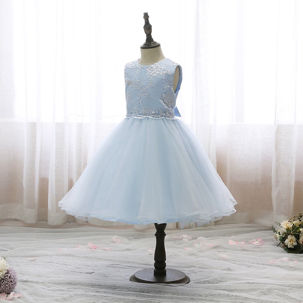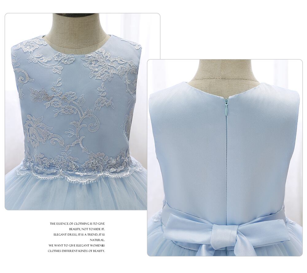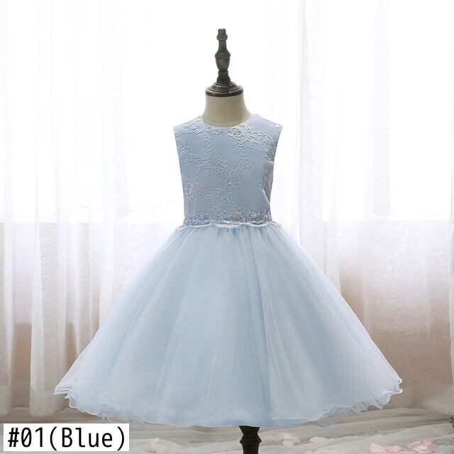 新作 キッズドレスガールズ刺繍ボウリボンノースリーブカラーボールガウンキッズガールズドレス