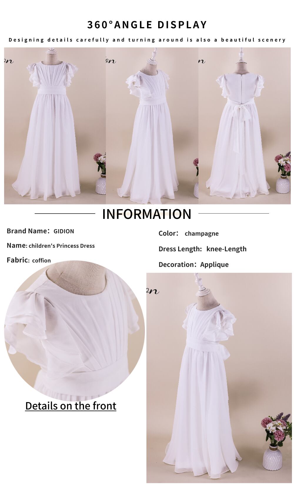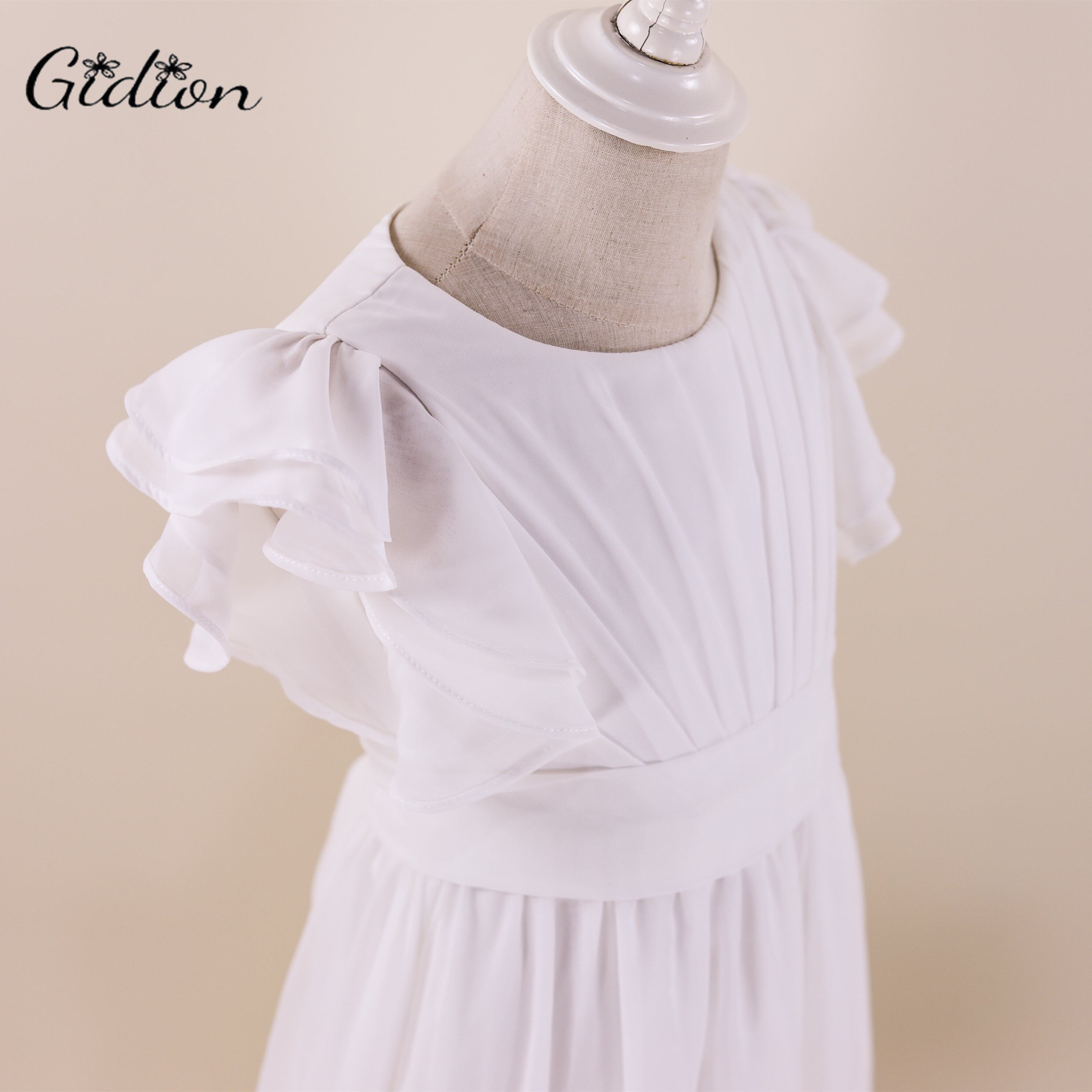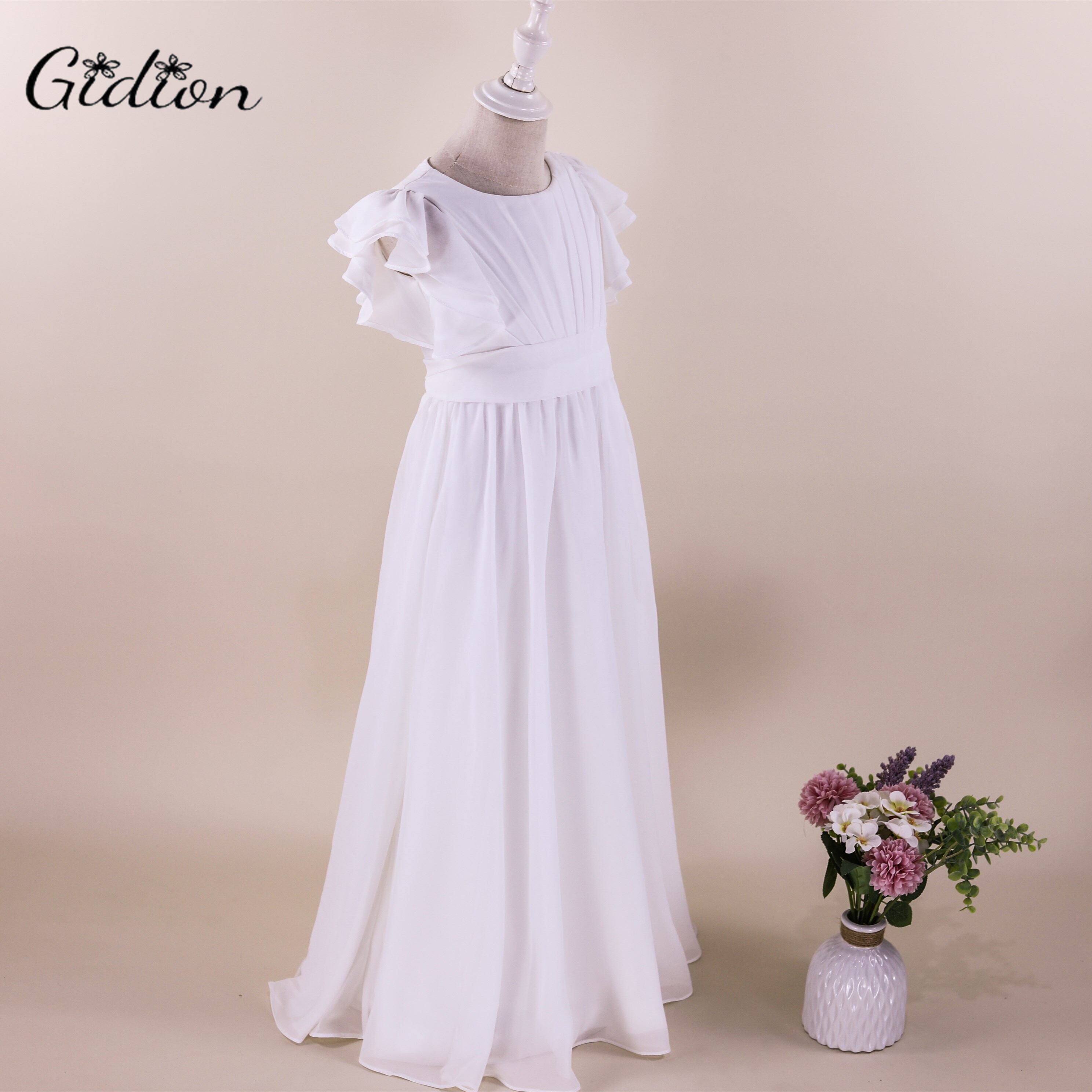 新作 Aラインガールドレス子供シフォンジュニアブライドメイドドレスフリルフラワーガールズドレス結婚式ユーカリスト出席