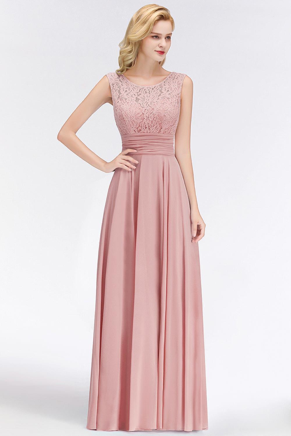 FATAPAESEVestidoダスティピンクレースロングブライドメイドドレスストレッチAラインシフォンドレスウェディングパーティーRobeDemoiselleD'honneur