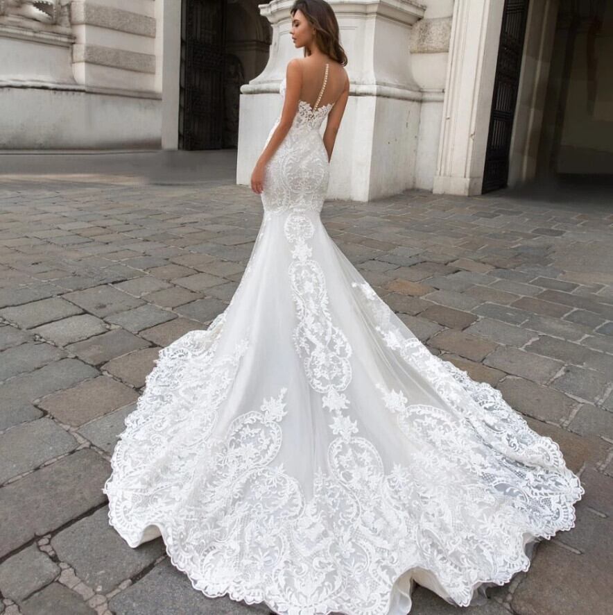 マーメイドウェディングドレスボタンバック取り外し可能なラップアップリケウェディングドレス花嫁ドレスマリアージュブライダルドレス2020女の子