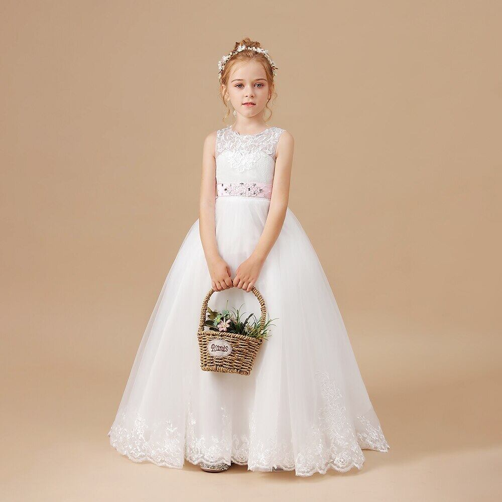 新作 フラワーガールドレスメッシュバタフライウェディングパーティードレスノースリーブスウィートキッズ服お辞儀バースデーパーティードレス