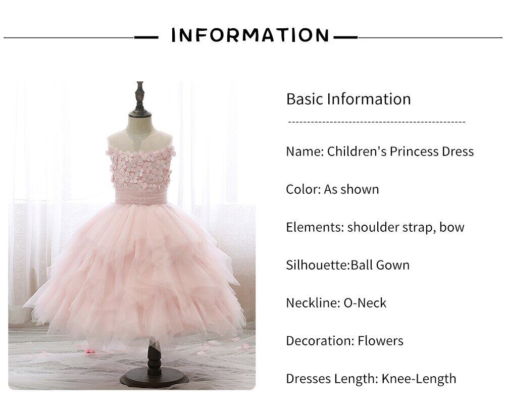 新作 ふくらんでいる糸のドレス結婚式のフラワーガールの誕生日ピンクのケーキのドレス子供アップリケノースリーブドレス女の子の服