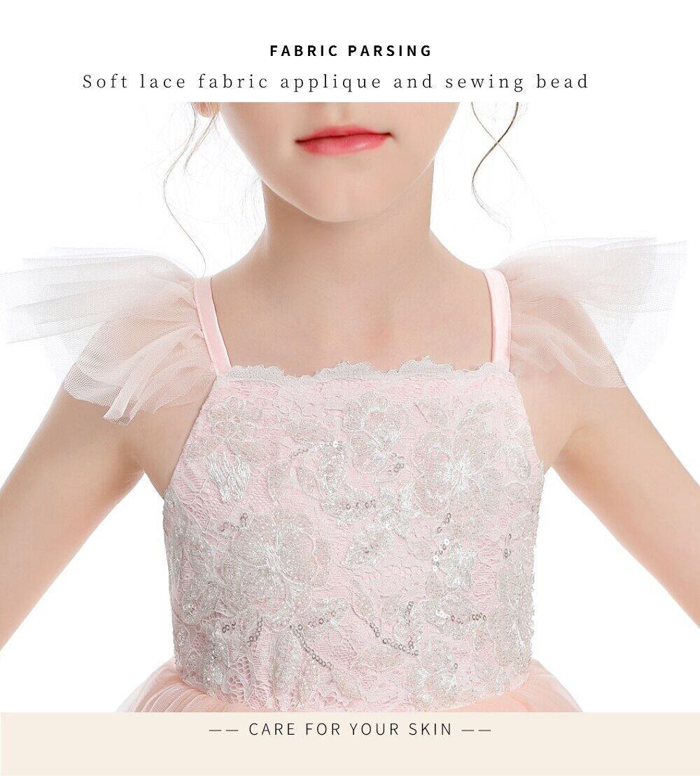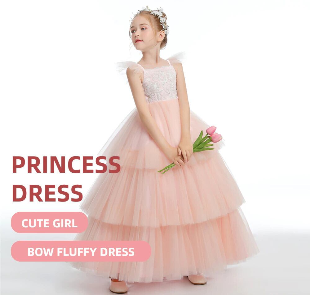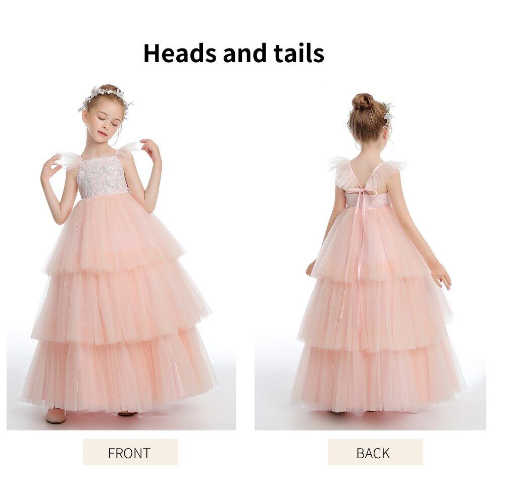 新作 最初のコミュニオンドレスガールズパールピンクノースリーブボールガウンレースアップリケフラワーガールドレスウェディング