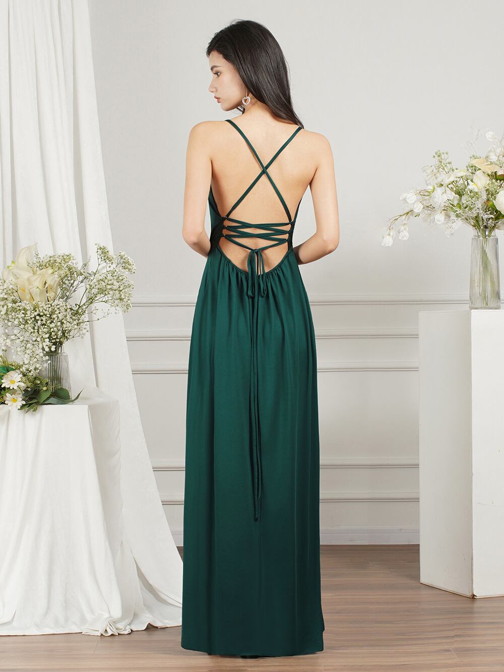 FATAPAESEセクシーイブニングドレスプランジングネックラインスプリットバックレスクロスレースアップシフォンドレスパーティーガウンローブドソワレファム