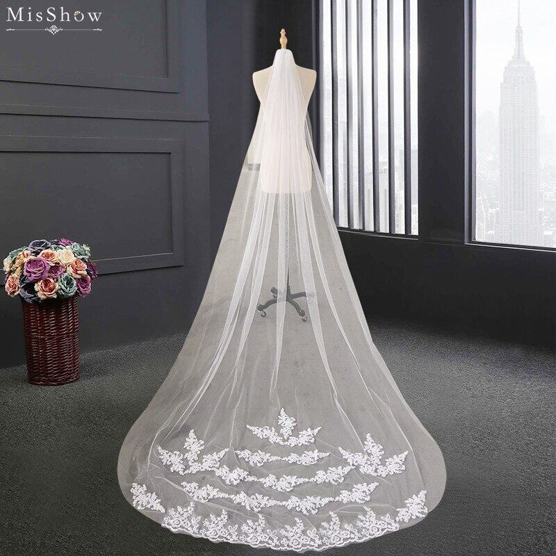 FATAPAESE豪華なブライダルベールレース3Mコームアップリケ付きウェディングアクセサリーアイボリーホワイトベール花嫁大聖堂