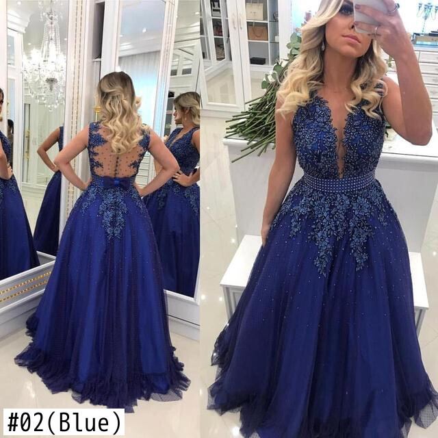 FATAPAESEAラインロイヤルブルーウエディングドレスロング2019セクシーイリュージョンバックマルパーティードレスチュールイブニングドレス