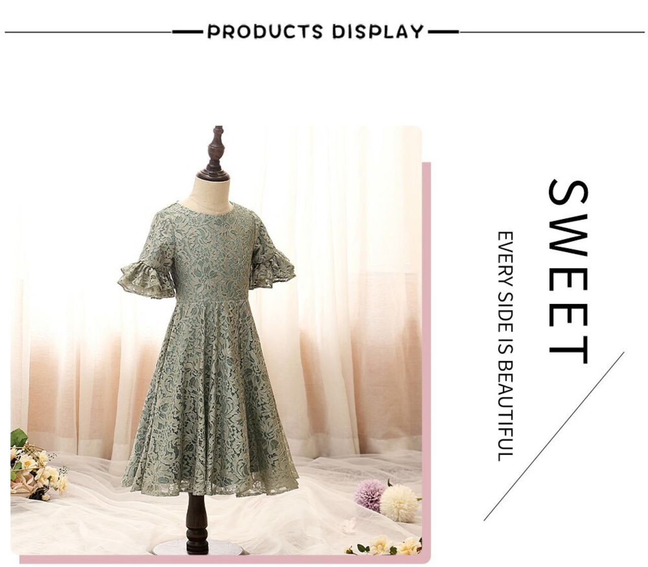 新作 ウエディングドレス2020エバープリティグレーOネックチュールレース刺繍ドレスホット花びらスリーブキッズウエディングドレス