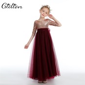 新作 シンプルなフラワーガールのドレス結婚式のジュニア花嫁介添人ドレスチュール/スパンコールパーティーウエディングページェントガウン子供用弓