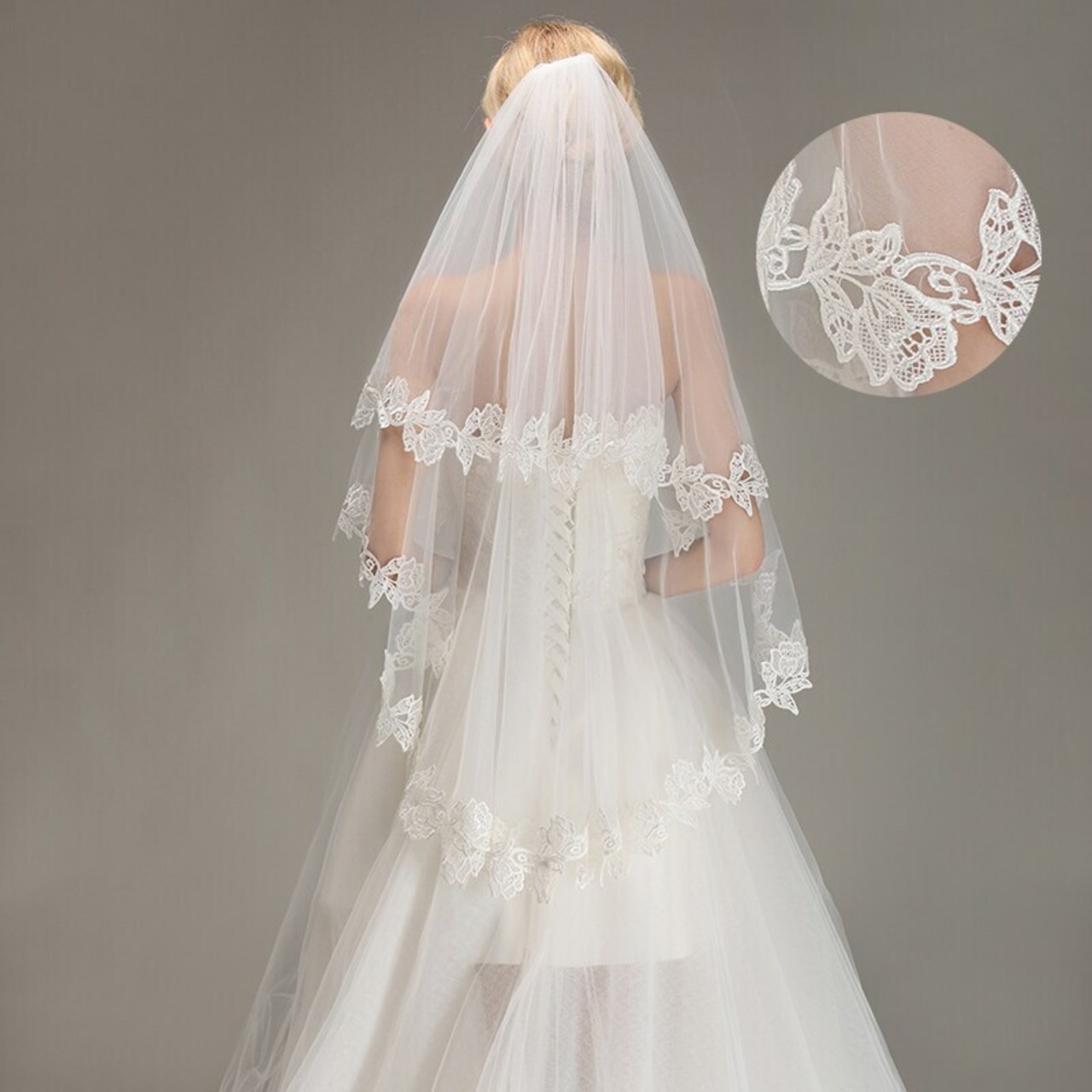 FATAPAESEロマンティックレースアップリケ2層ウェディングベールコーム付き1.5Mベールウェディングアクセサリーブライダルベールvelosdenovia