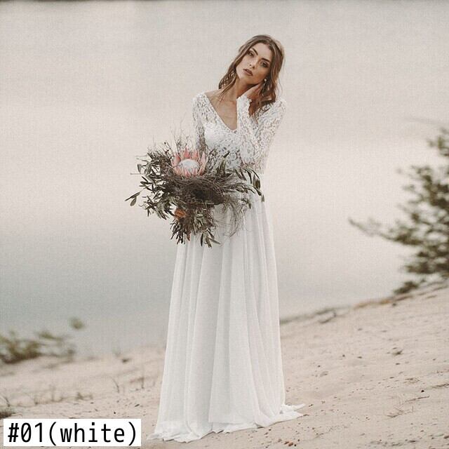 自由奔放に生きるウェディングドレス2020床の長さVネックレース背中の開いたビーチボヘミアンシフォンの花嫁のドレスのウェディングドレスローブデマリアージュ