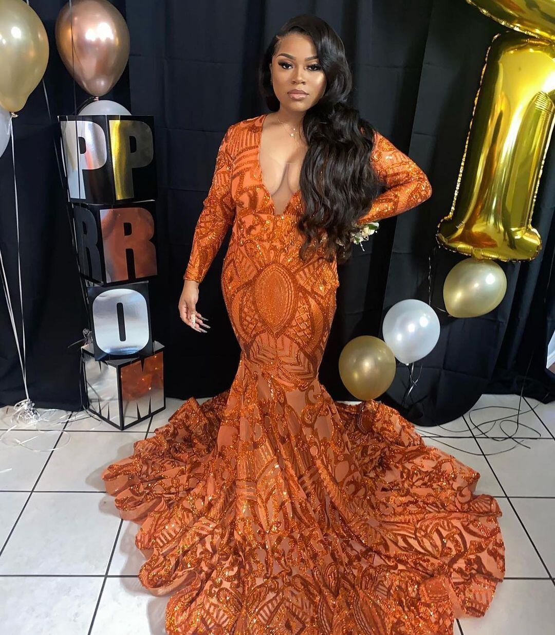 FATAPAESEアフリカンブラックガールズシアーオレンジマーメイドウエディングドレスSxeyMonai長袖アップリケレース女性イブニングパーティードレス