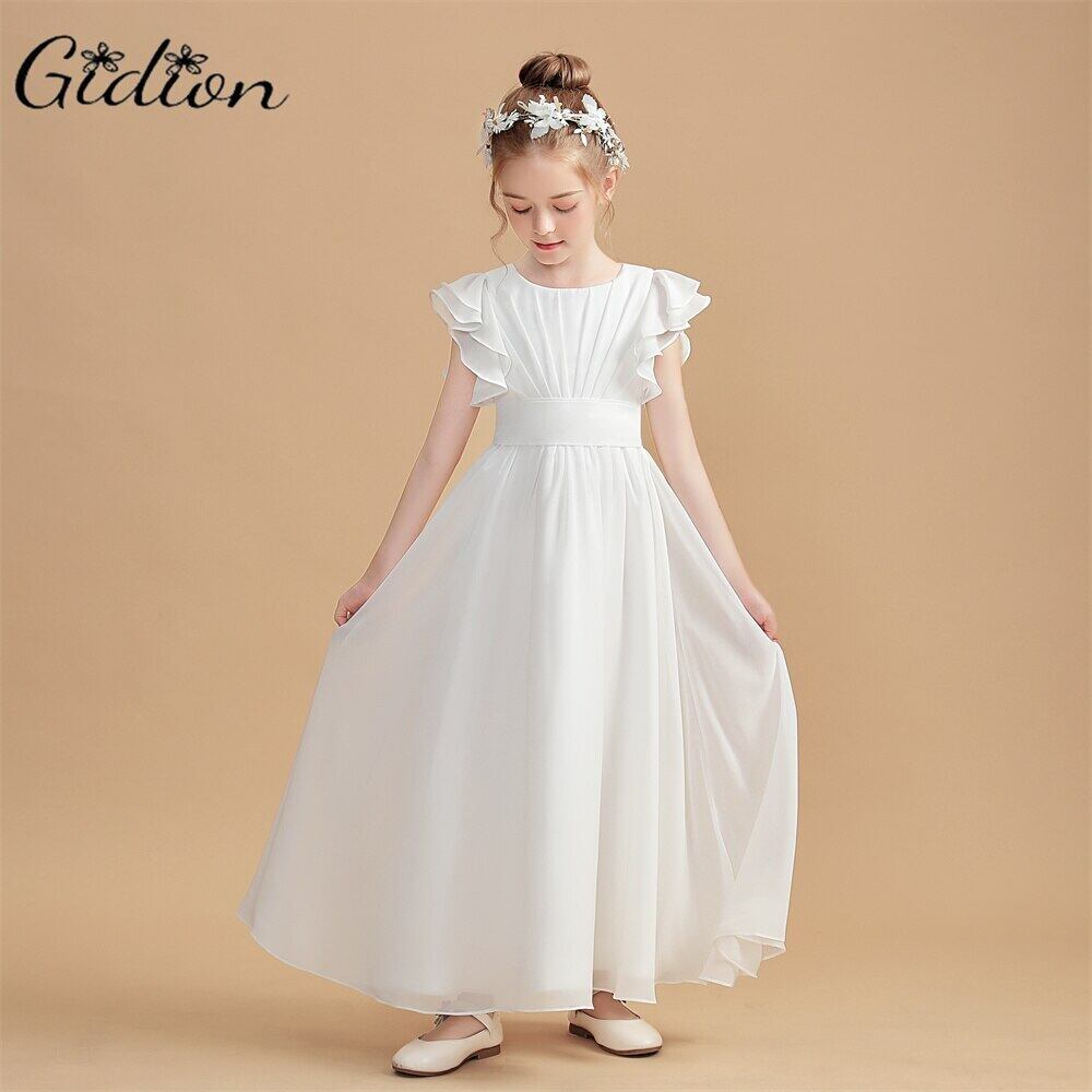 新作 Aラインガールドレス子供シフォンジュニアブライドメイドドレスフリルフラワーガールズドレス結婚式ユーカリスト出席