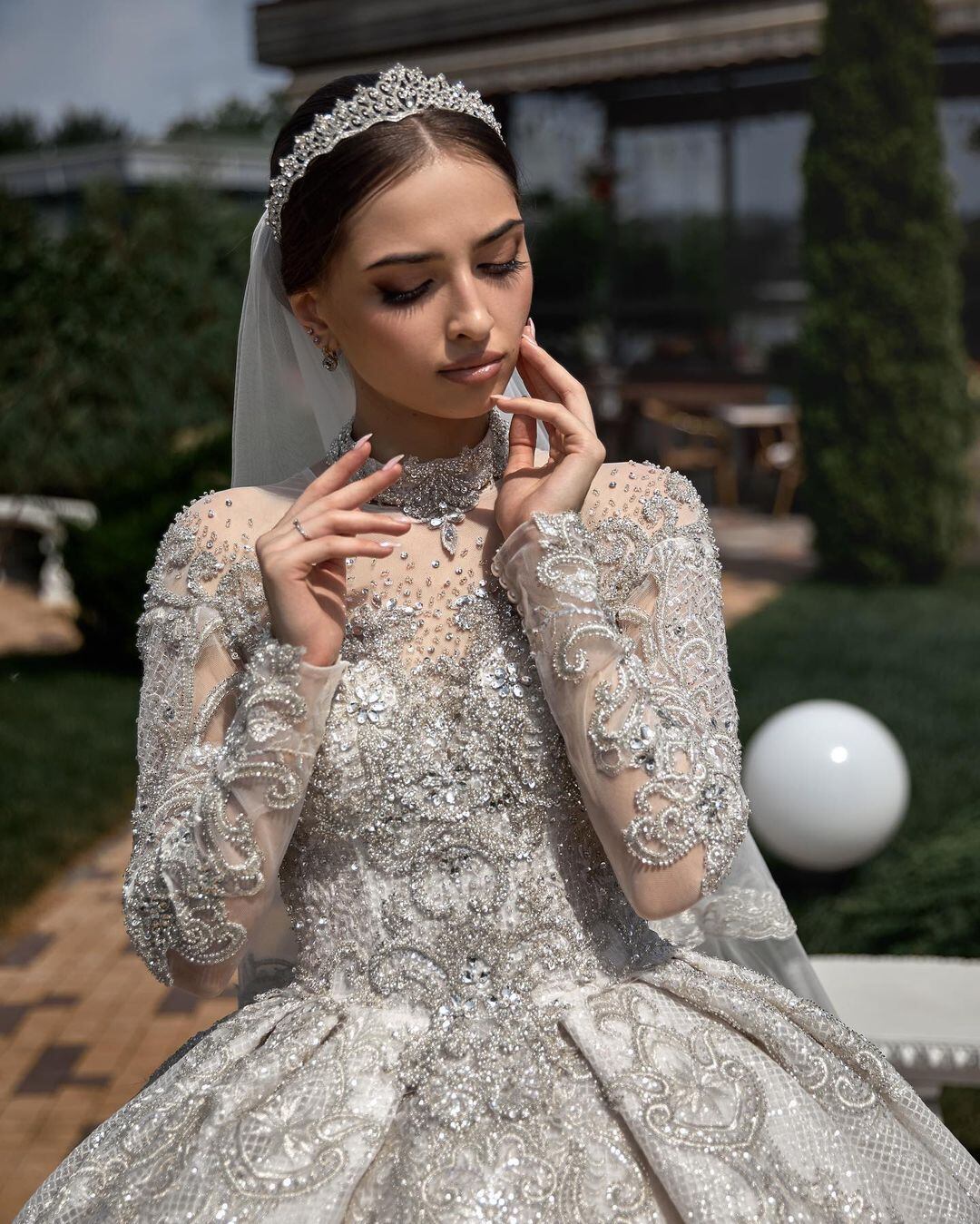 FATAPAESE高級ビーズのウェディングドレスLordСтелла長袖セクシーなオープンバックドバイローブデマリアージュG