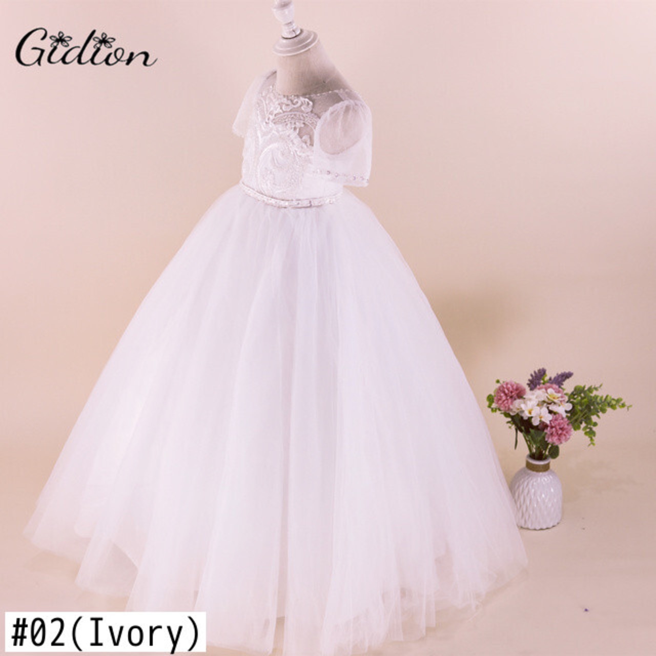 新作 フラワーガールのドレスレースのアップリケビーズのボールガウンビーズの床の長さページェント最初のコミュニオンドレス