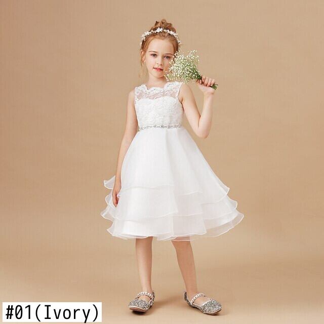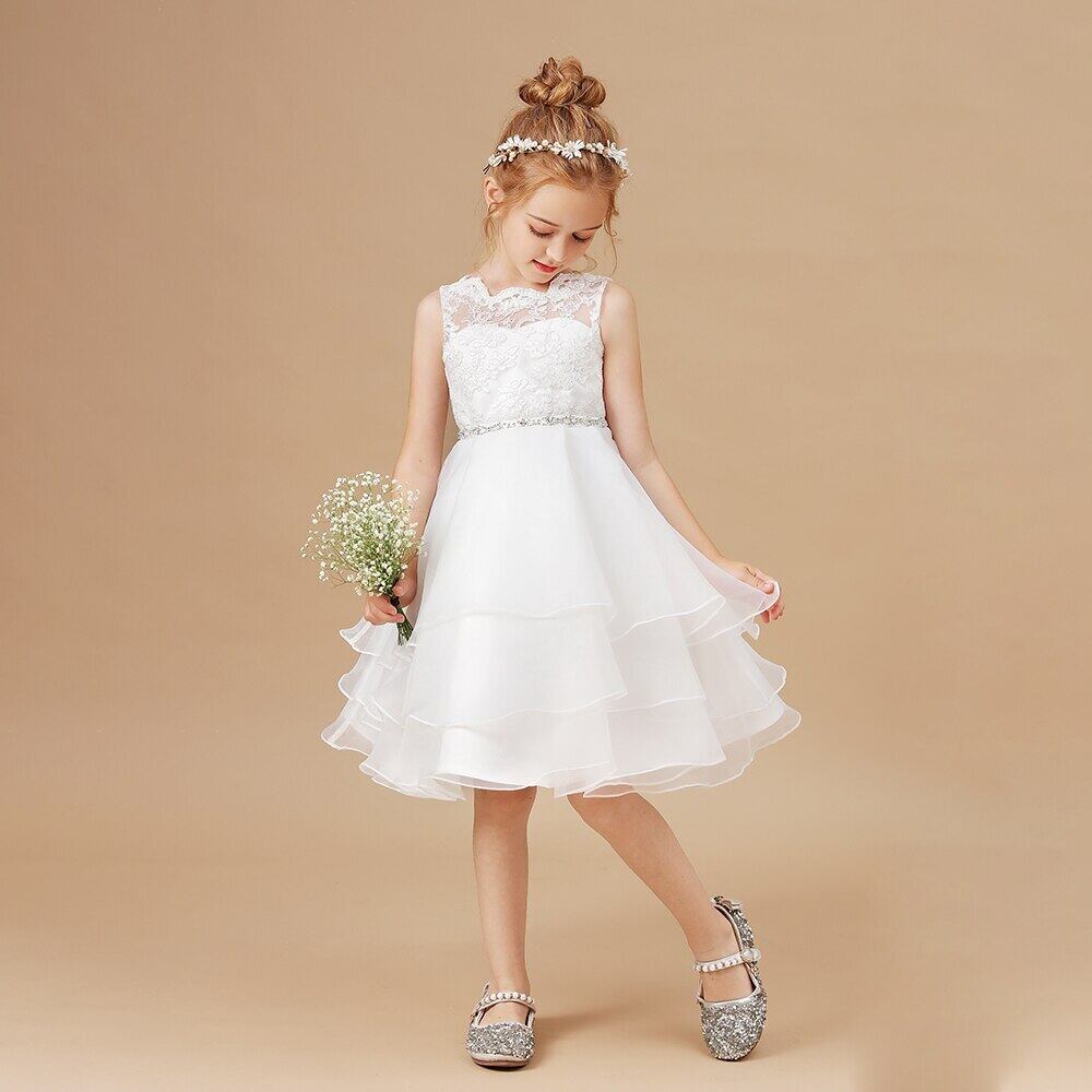 新作 キッズフラワードレスガールズレースバースデーパーティードレスキッズクリスマスノースリーブドレスウェディングパーティー