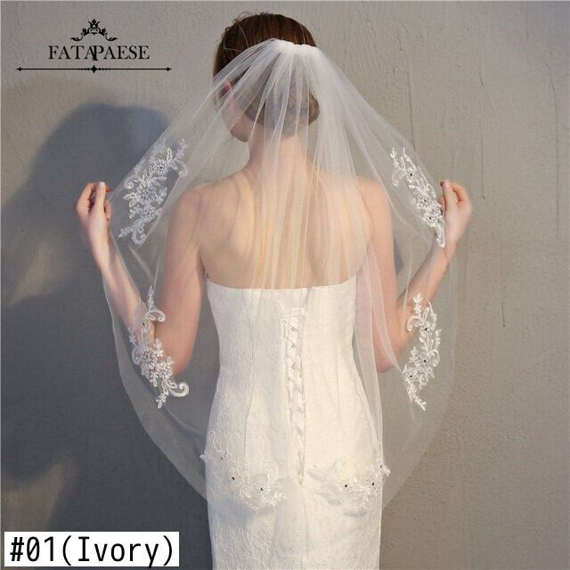 FATAPAESEレースエッジベールワンレイヤー85CMショートウェディングベールコーム付きソフトチュールウェディングアクセサリーホワイトブライダルベロスデノビア
