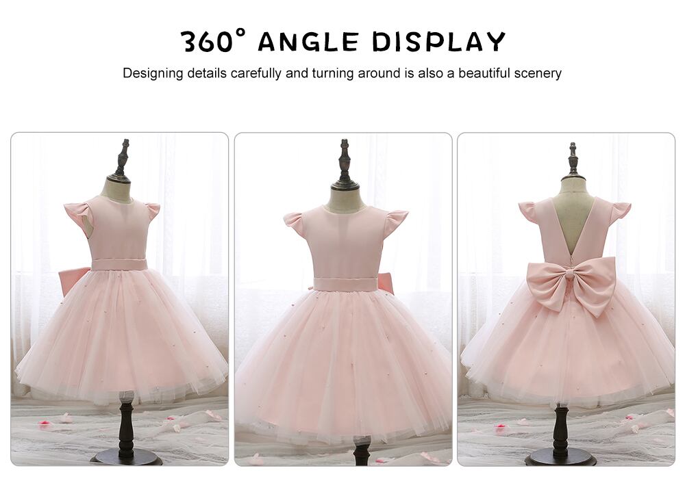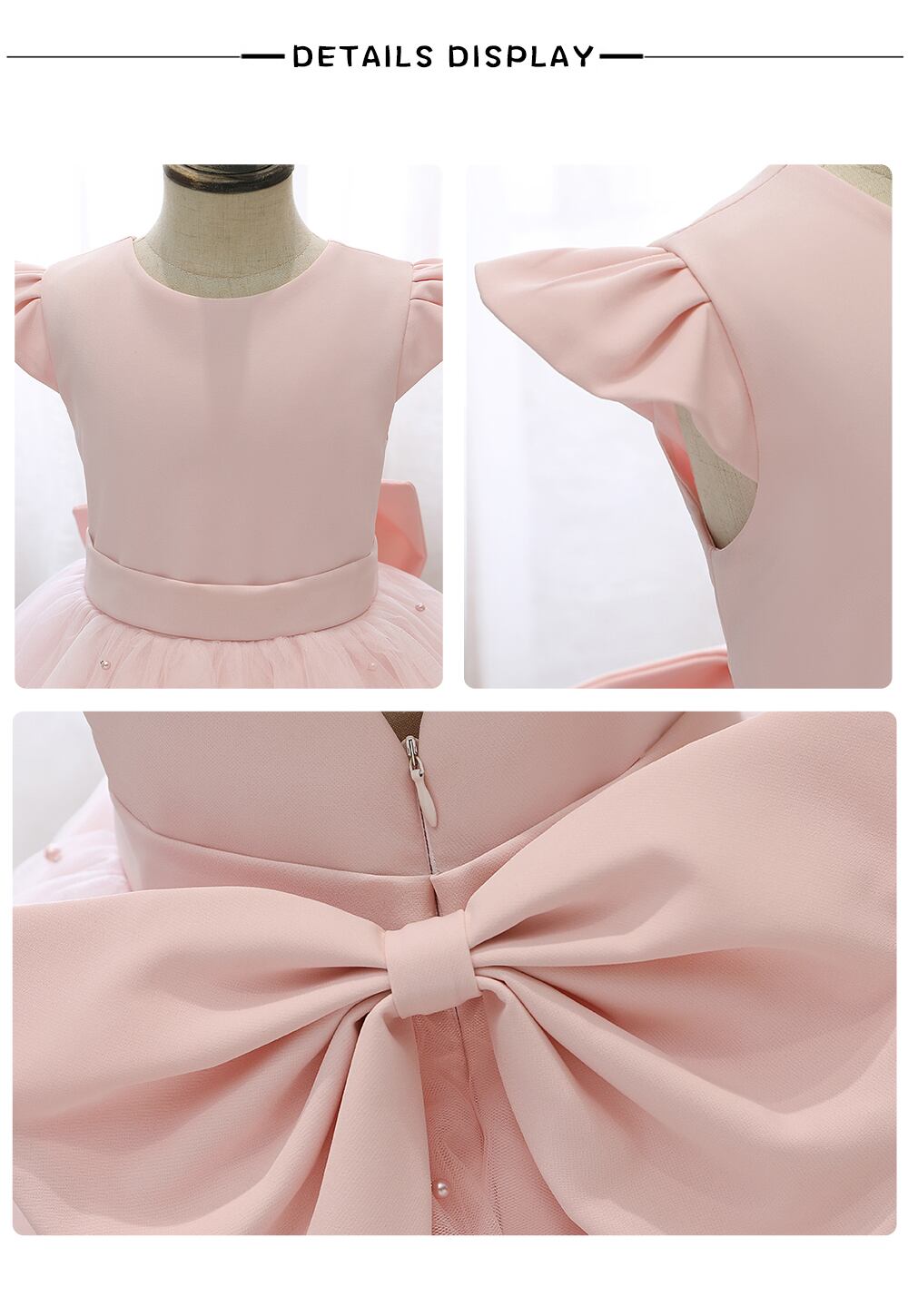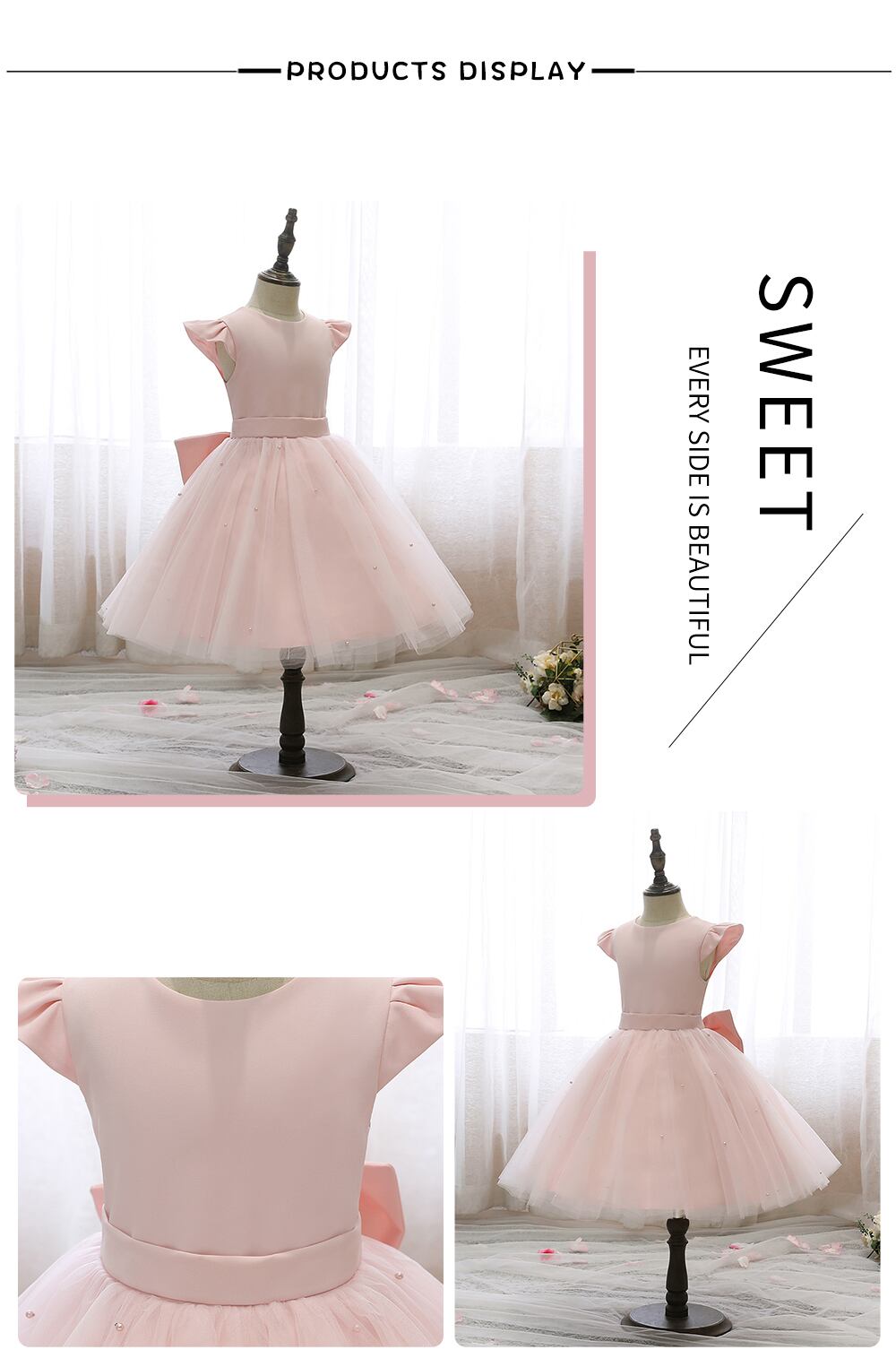 新作 2-14Yガールズキッズパーティードレスバースデーパフィードレスガールズピアノパーマンスドレスボウ花びらスリーブフラワーガールドレス