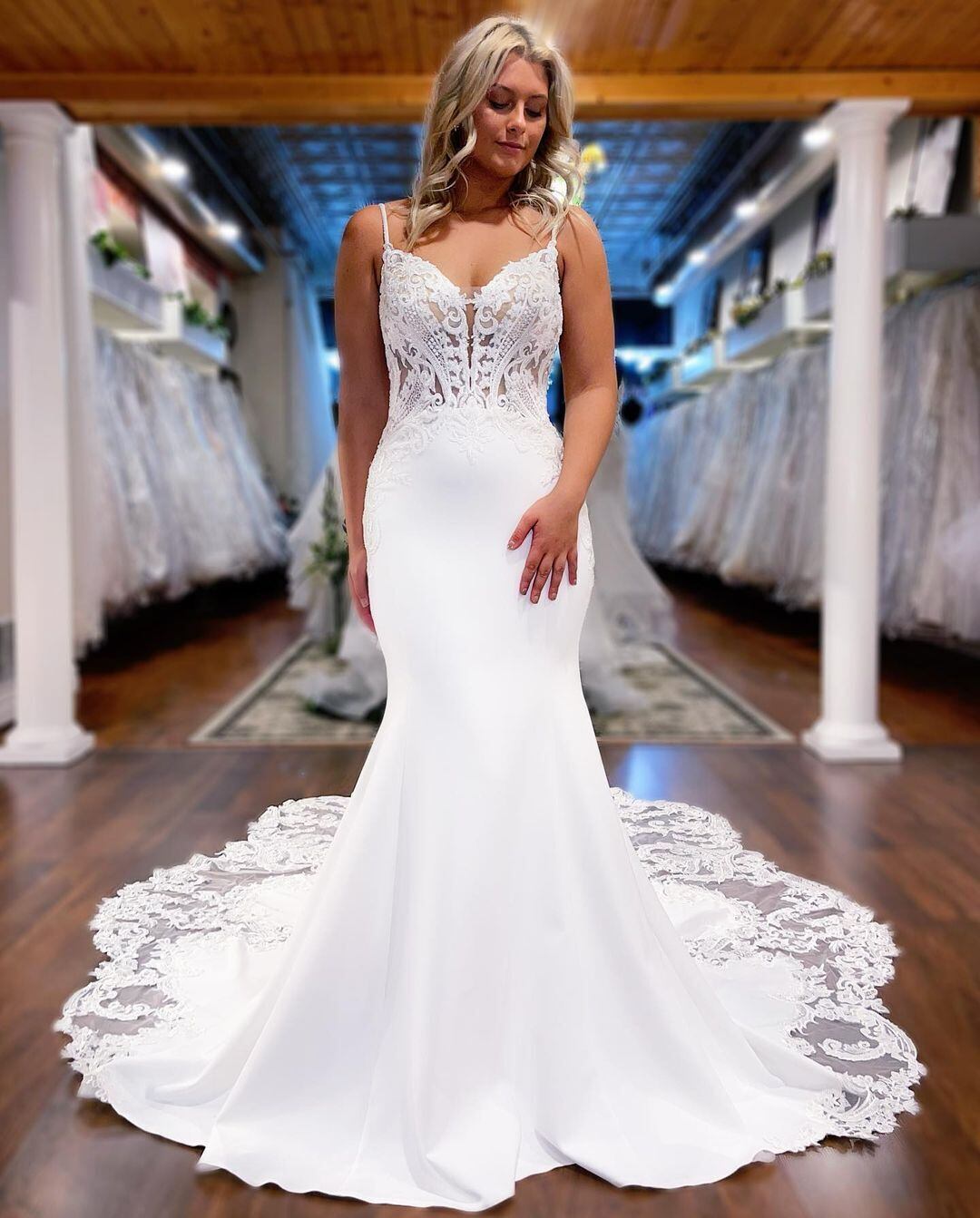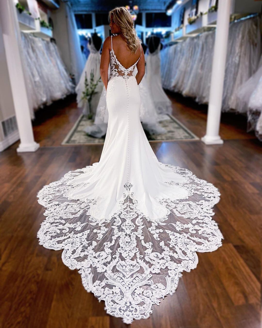 FATAPARESEウェディングドレスマーメイドドレスシンプルなブライダルドレスレースエッジ背中の開いたボタンセクシーなVネック適用vestidosdenovia