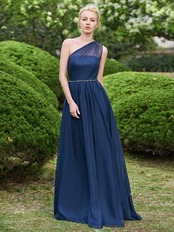 ワンショルダーシフォンロングブライドメイドドレス2019ビーズウェディングパーティードレスローブデモワゼルドヌール