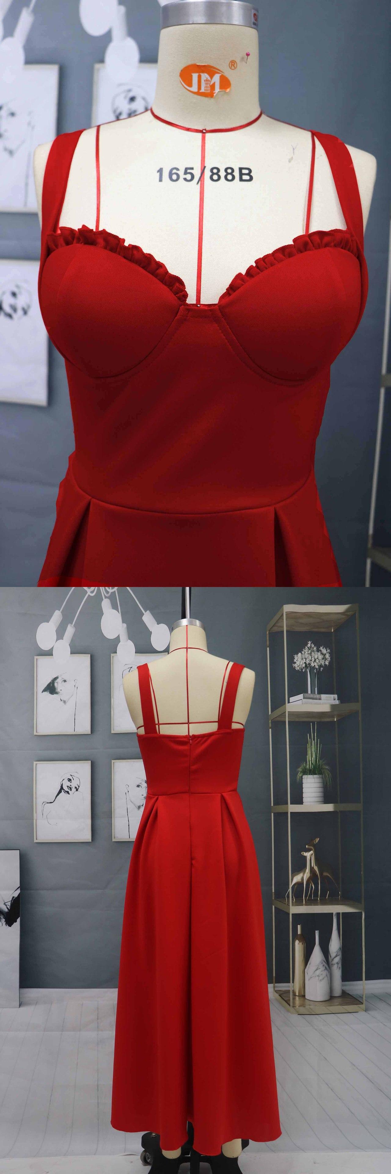 FATAPAESEスウィートハートVネックセクシーカクテルドレススパゲッティレッドサテンロングドレスサマーイブニングパーティードレスVestidoDe