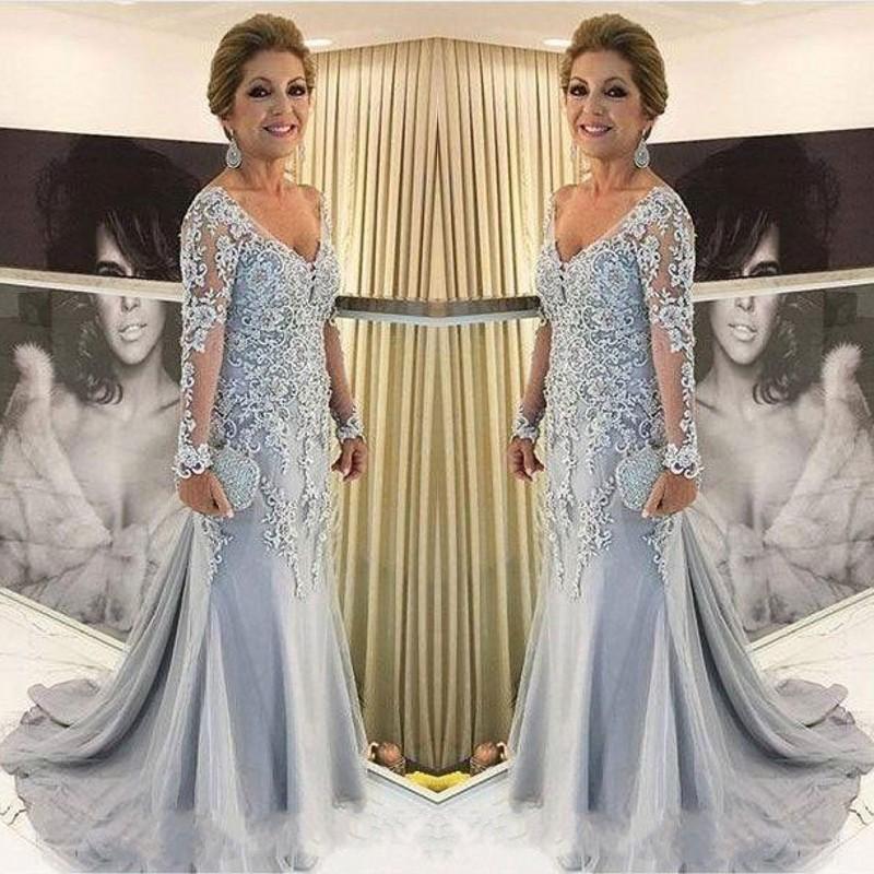 FATAPAESEマーメイドロングスリーブマザーオブザブライドドレス2019Vネックアップリケウエディングドレスロングパーティードレスウエディング