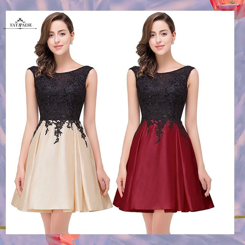 FATAPAESE VestidodeFestaコントラストカラーレースカクテルパーティーショートイブニングドレス在庫ありセクシーなノースリーブイブニングドレス