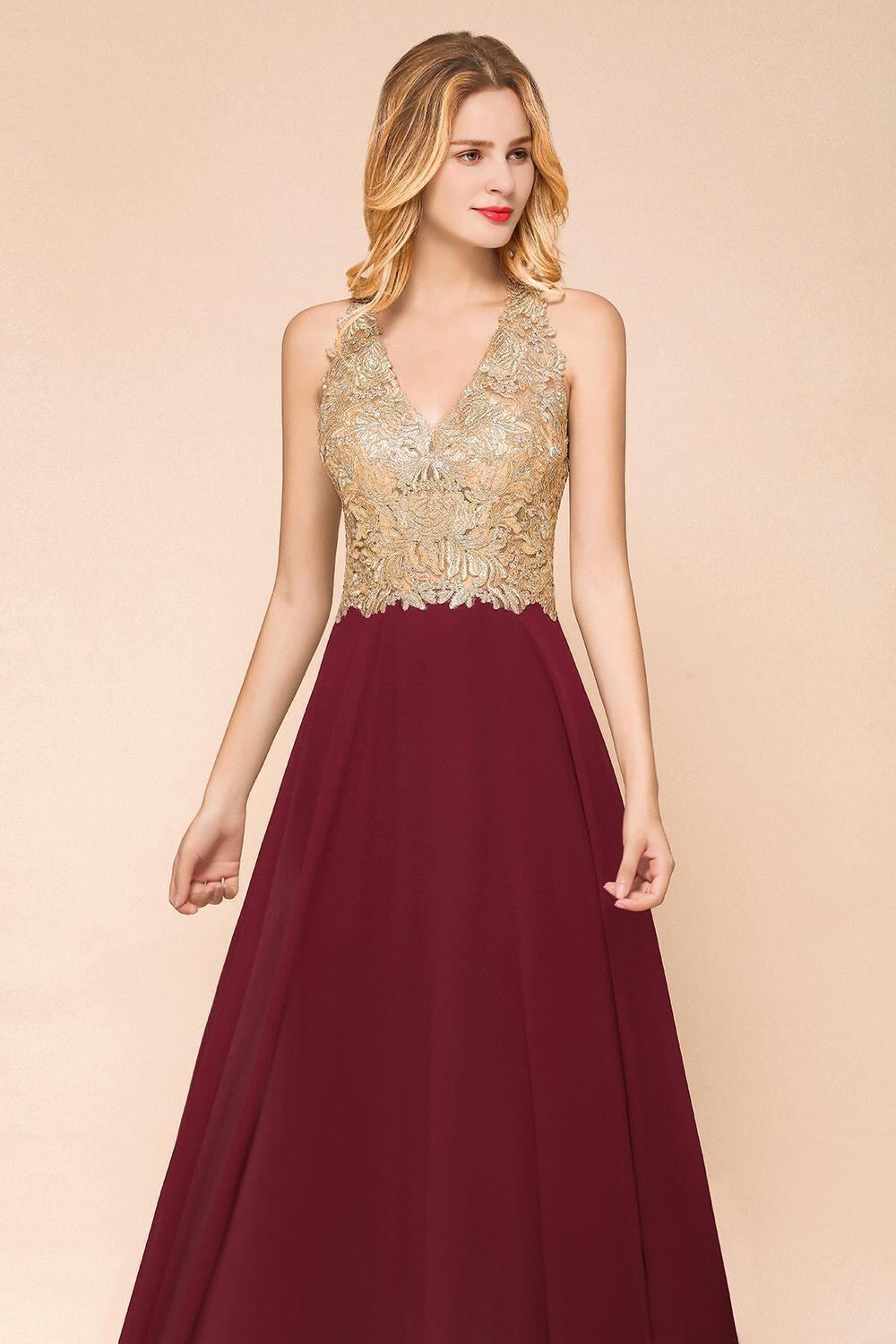 FATAPAESEゴールデンアプライブルゴーニュブライドメイドドレスlllusionセクシーな背中の開いたシフォンのウェディングドレスVestidosrobedesoiréede
