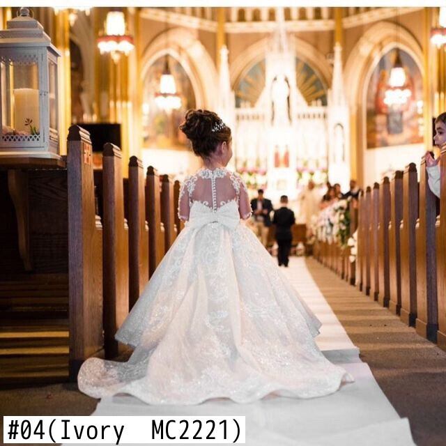 FATAPAESE2-14年レースチュールフラワーガールドレスボウズ子供初のコミュニオンドレス夜会服ウェディングパーティードレス