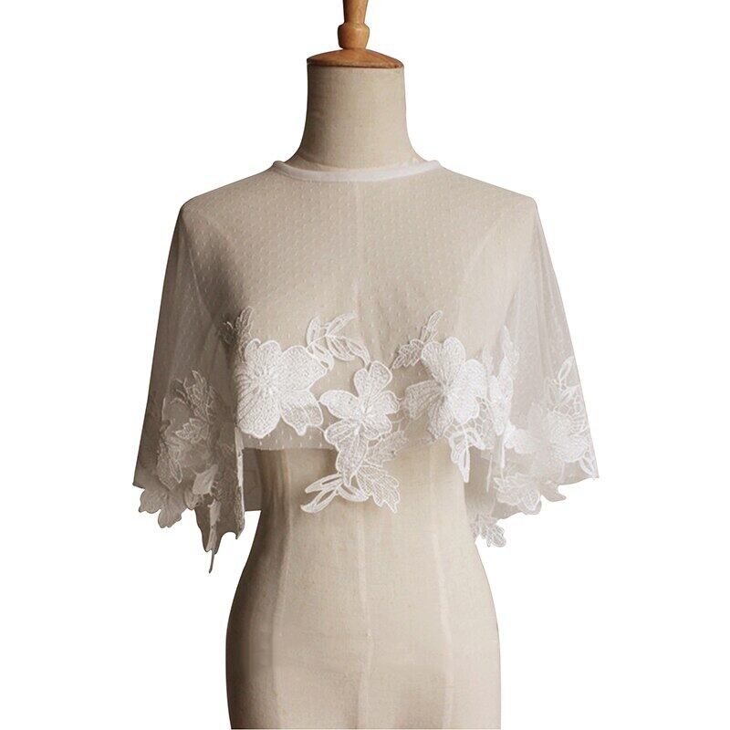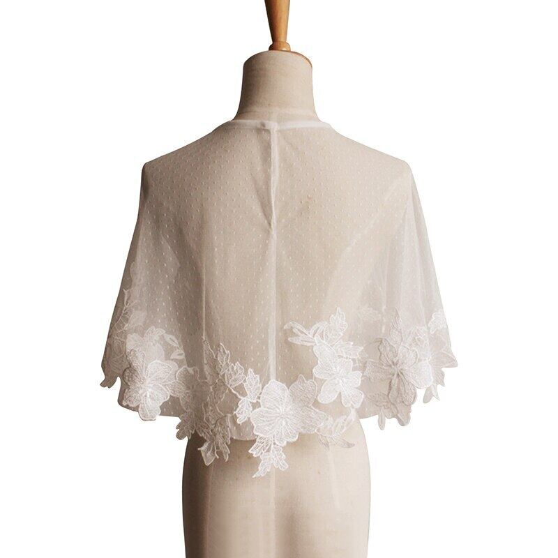 レースボレロラップアップリケエッジブライダルレースショールイブニングケープショートブライダルラップヴィンテージウェディングアクセサリー