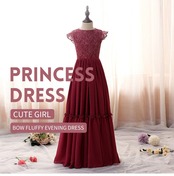新作 結婚式子供用夜会服花びらスリーブワインレッド-エンドパーティーセレモニードレス誕生日宴会女の子服