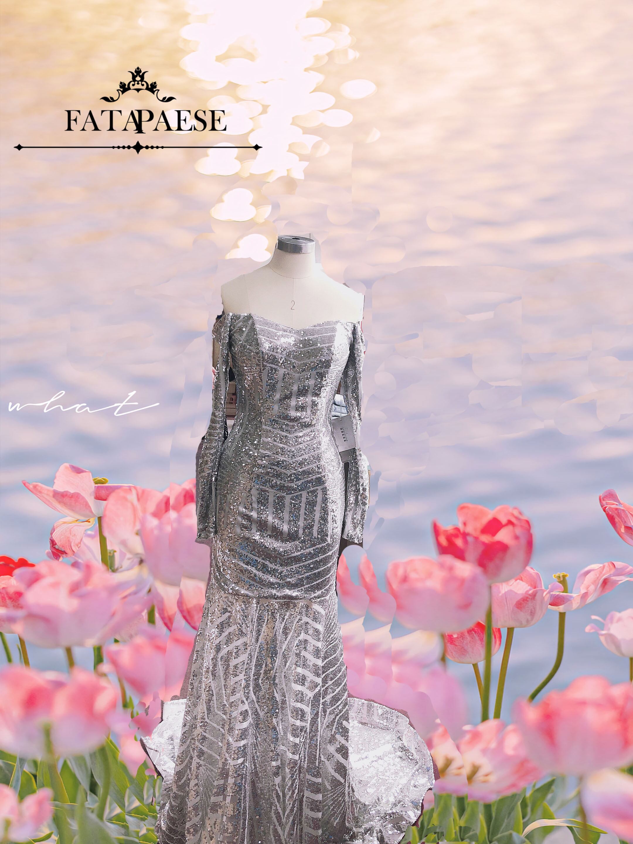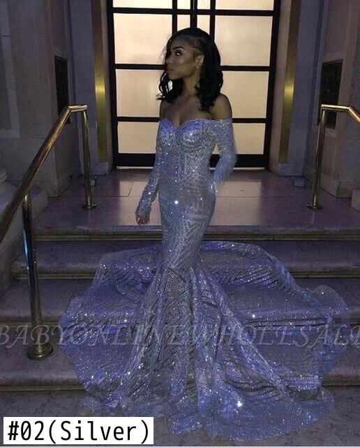 キラキラスライバーウエディングドレスボートネックイブニングマーメイドドレスマルドレスパーティーロングスリーブブラックガールドレスヴェスティドガラ