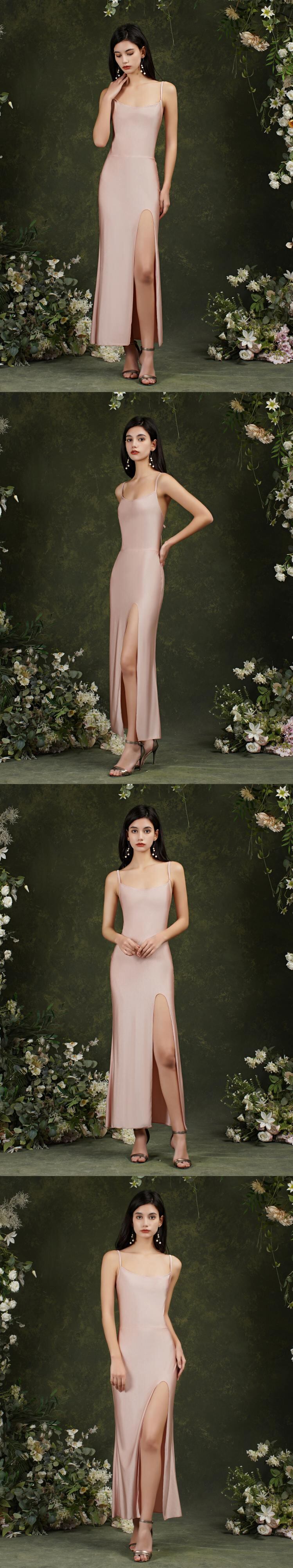 FATAPAESEフロアレングスサイドスプリットマーメイドブライドメイドドレスセクシーディープVホルターネックシルキーサテンドレスシンプルなウェディングドレス