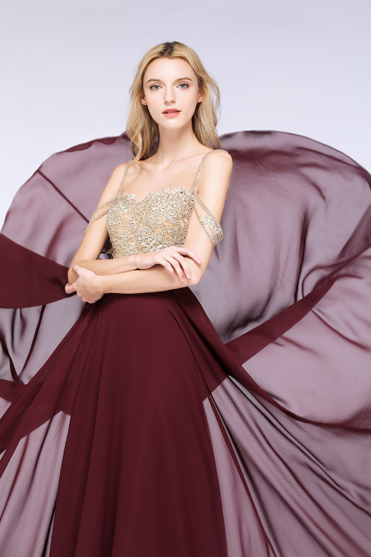 ラグジュアリービーズローブデソワレシフィオンAラインロングバックレススパゲッティストラップイブニングドレス2019VestidoLongo Festa