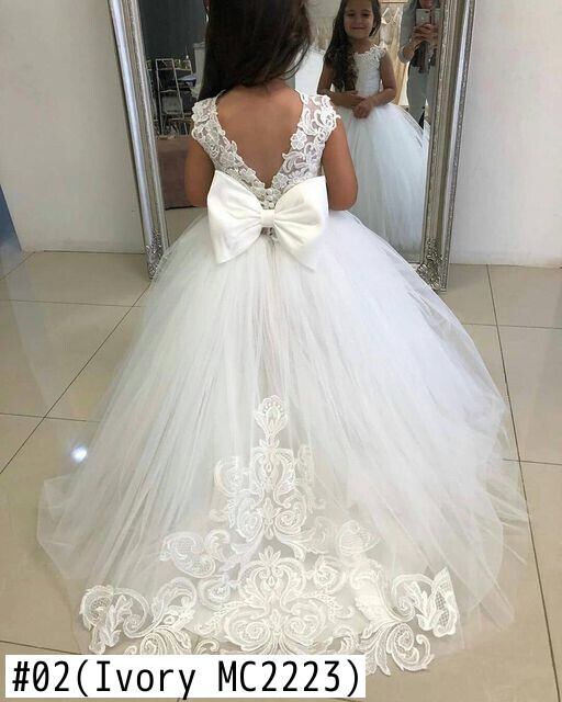 FATAPAESEシフォンチュールフラワーガールドレスウェディングパーティージュニアブライドメイドドレスのフラワーガールAラインアイボリーファーストコミオンドレス