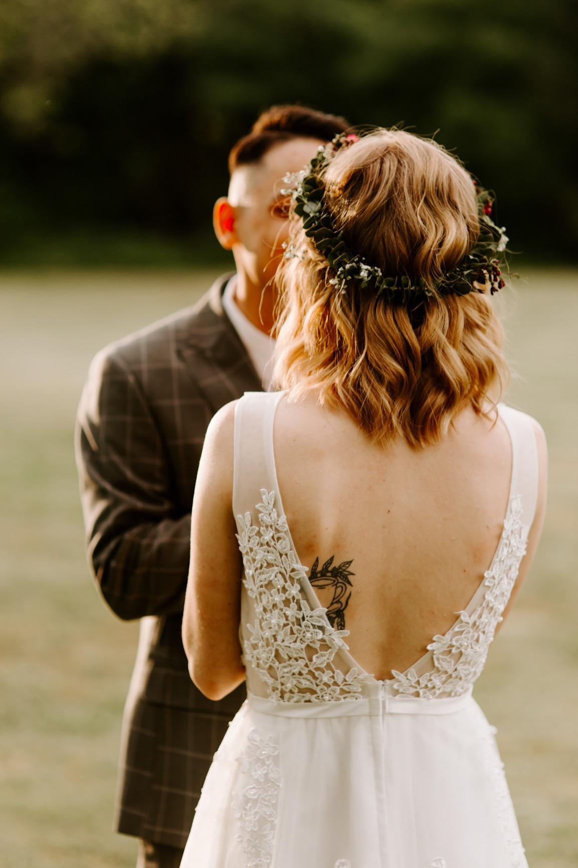 ウェディングドレスソフトチュールレースAppquliesビーズlllusionカントリーガーデンウェディングドレスパーティーシンプルな背中の開いた夏のローブdesoirée