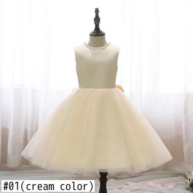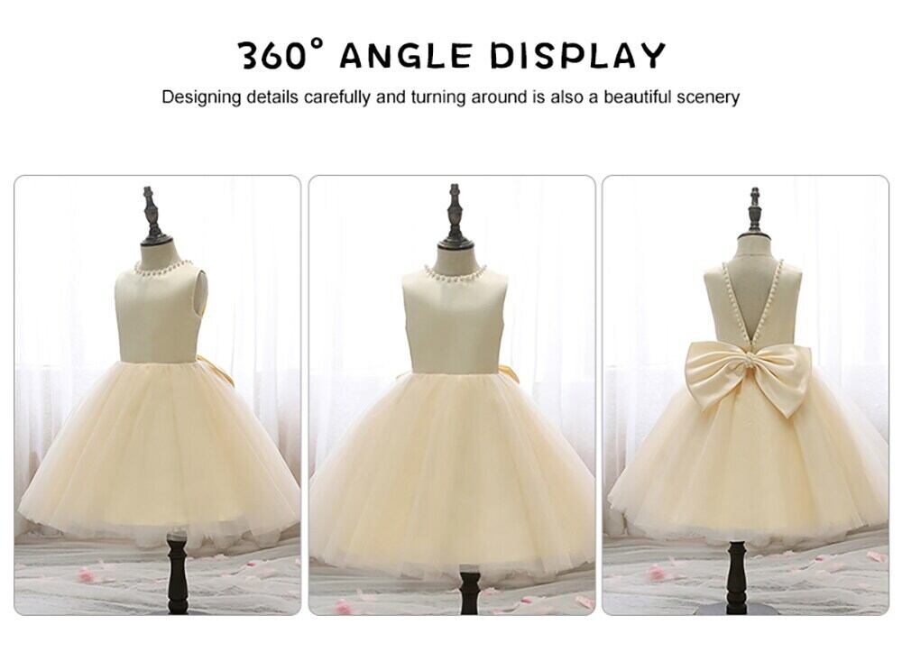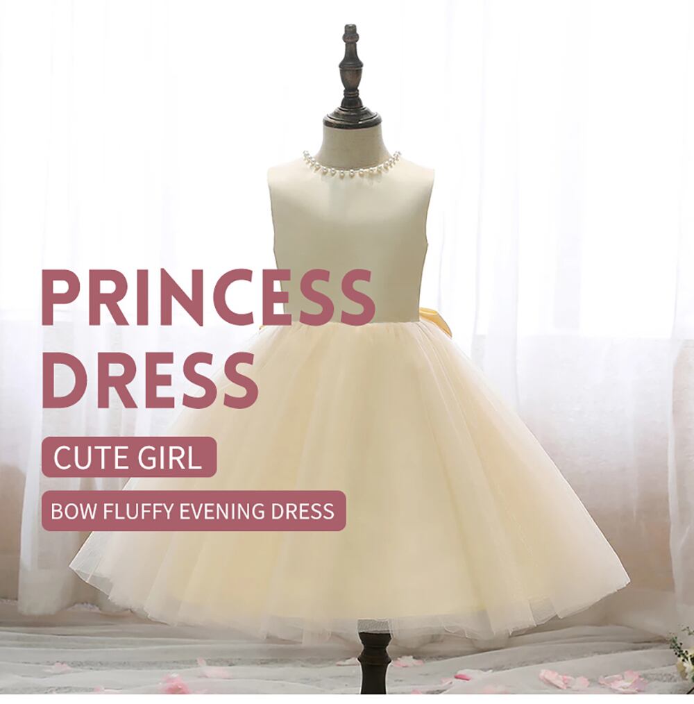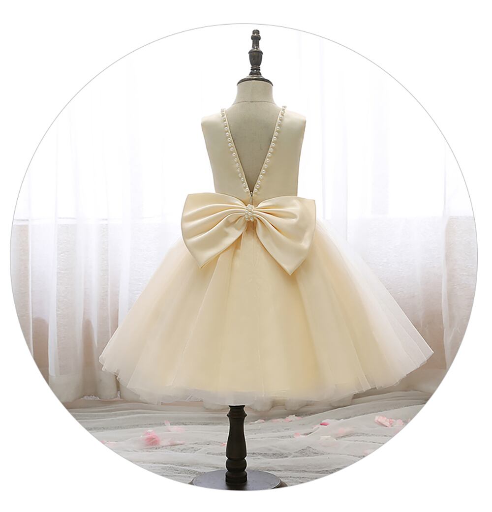 新作 ガールズドレス-エンドVバックビッグボウシャンパンノースリーブドレスガールズバースデークリスマス服2-14歳