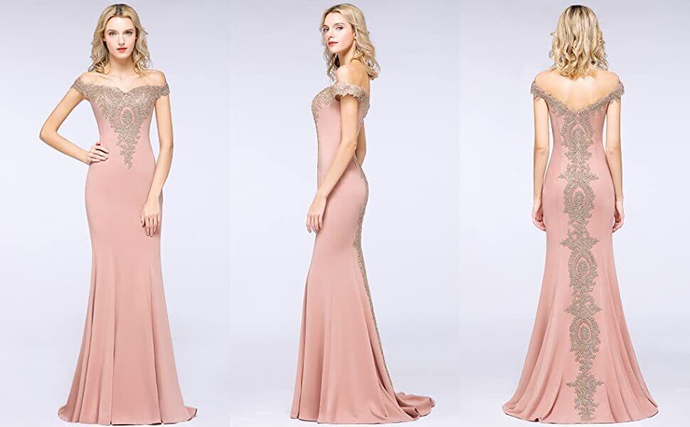 FATAPAESEイブニングドレスオフショルダーレースアップリケマーメイド恋人ウェディングイブニングドレスローブdesoiréedemariage