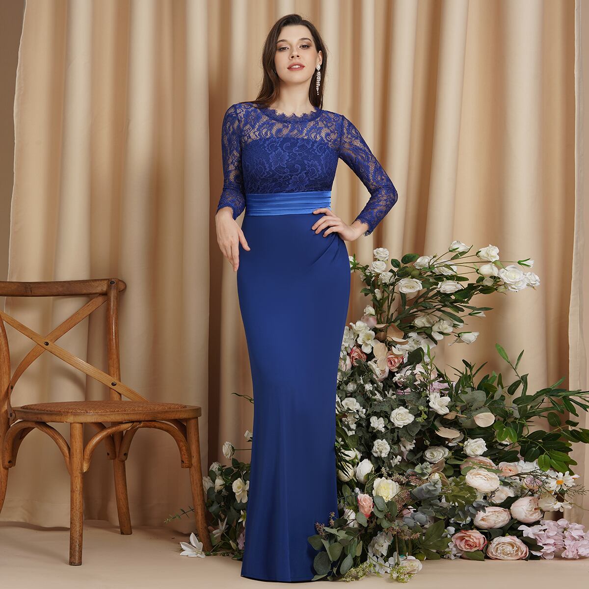 FATAPAESEマーメイドドレスイリュージョン床の長さmalイブニングパーティーガウンレースフラワー3/4袖vestidosrobedesoiréefemm