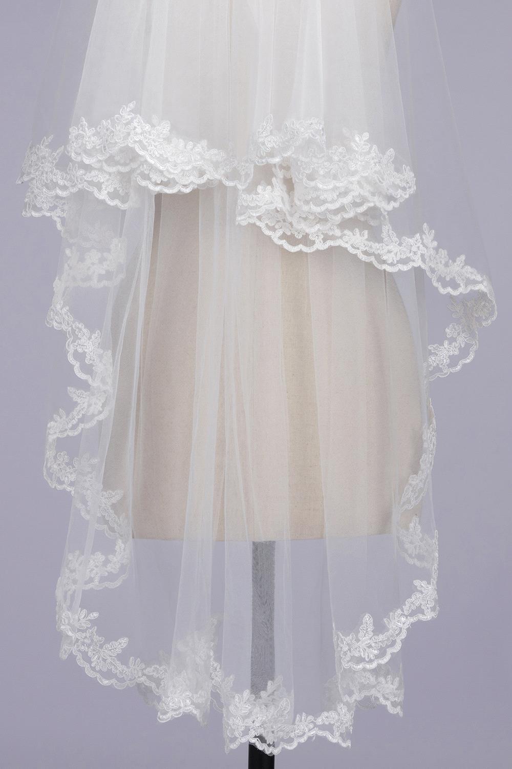 FATAPAESEレースエッジアップリケ2層1.5Mウェディングベール、コームソフトチュールウェディングアクセサリーホワイトアイボリーブライダルベール