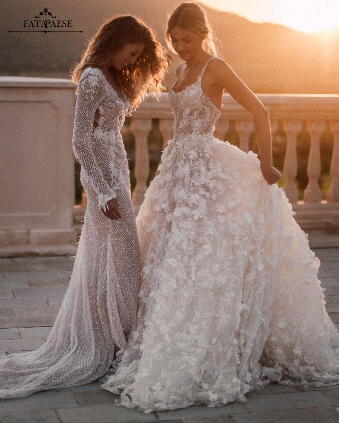 FATAPAESEゴージャスなウェディングドレス床の長さAラインスウィートハートブライダルフェザーレースアップリケフラワーガウンイブニングパーティー