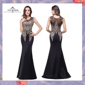 FATAPAESEラグジュアリークリスタルAppquliesビーズマーメイドウエディングドレスブラックアップリケシアーボディスイブニングパーティードレスRobedeSoiree