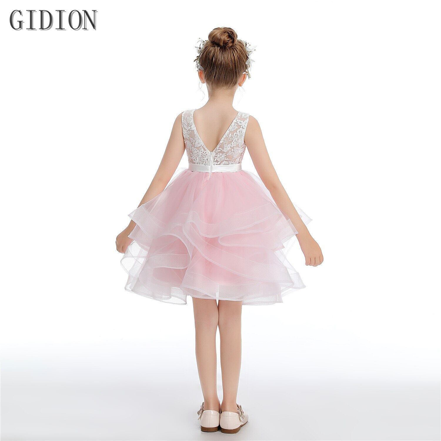 新作 ブラッシュピンクショートフリルフラワーガールドレスウェディングパーティーキッズバースデーガウンリトルページェントガウンティアードスカート