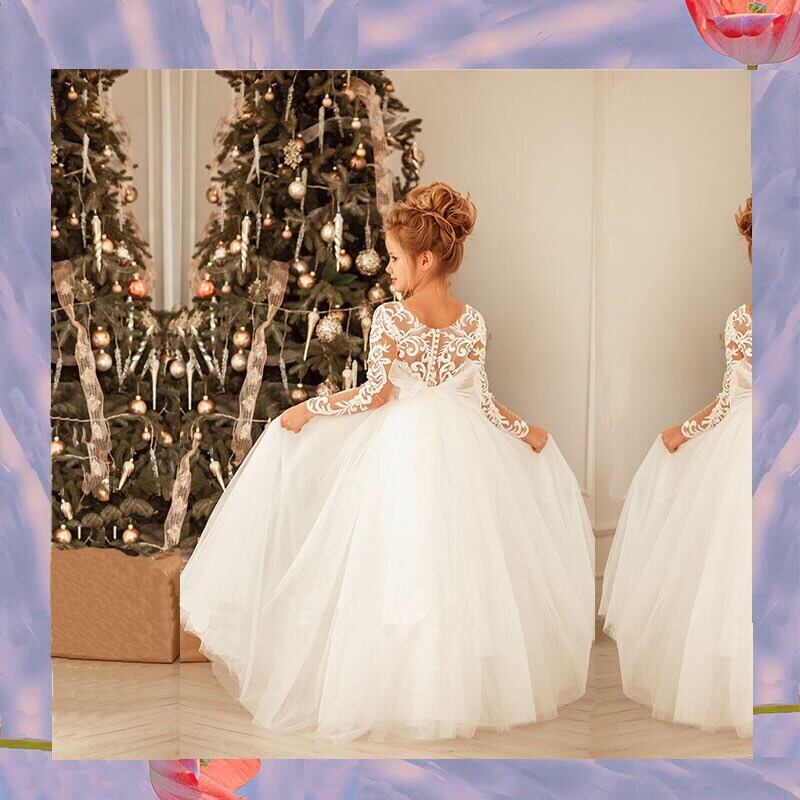 FATAPAESEレースフロワーガールドレスカスタムメイドアイボリーチュチュチュールドレスボールガウン幼児トレインドレス初聖体