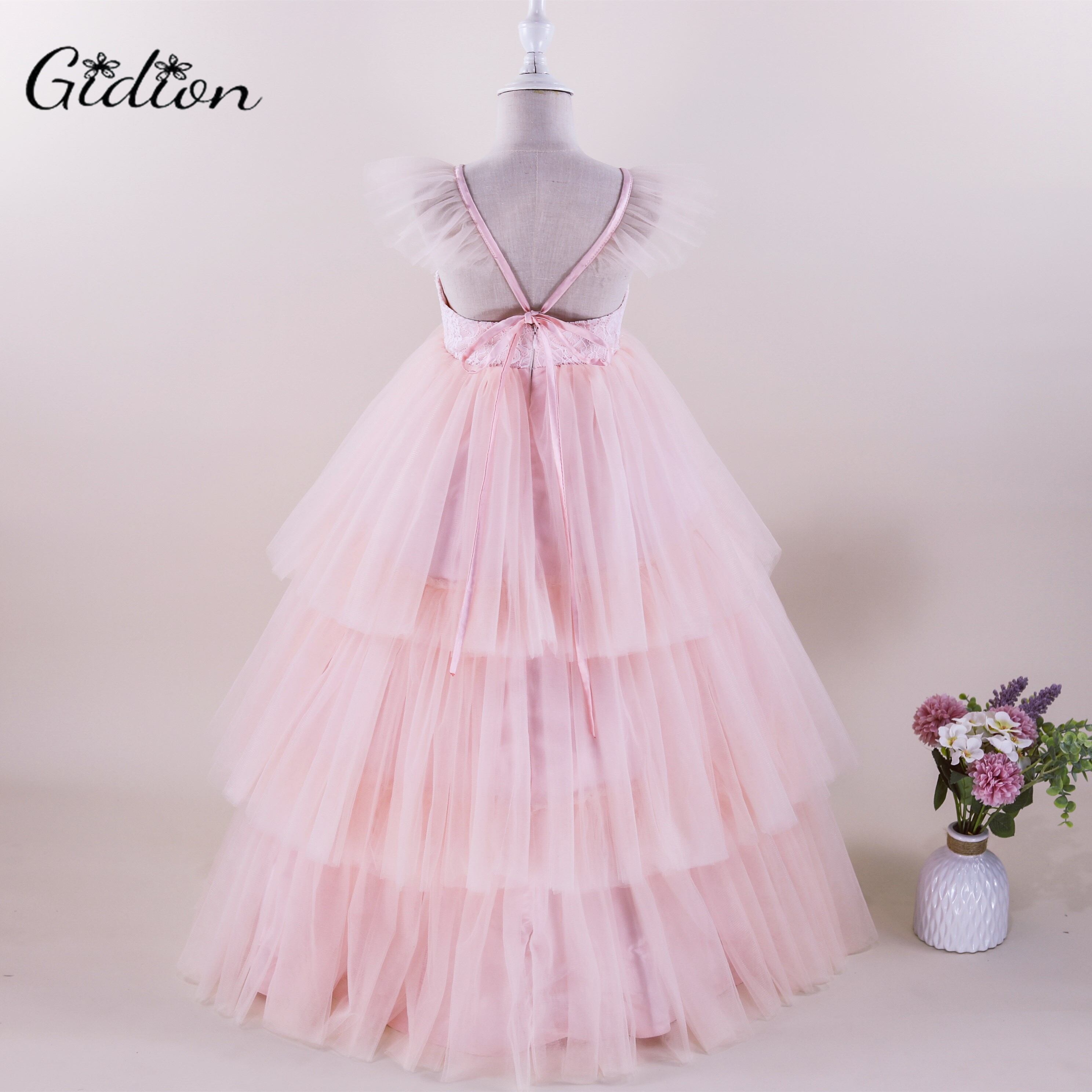 新作 最初のコミュニオンドレスガールズパールピンクノースリーブボールガウンレースアップリケフラワーガールドレスウェディング